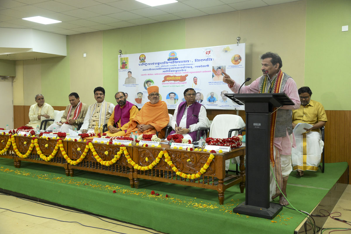 Prof. Harekrishna Satapathy, esteemed former Vice-Chancellor of National Sanskrit University, Tirupati, addresses the assembly
