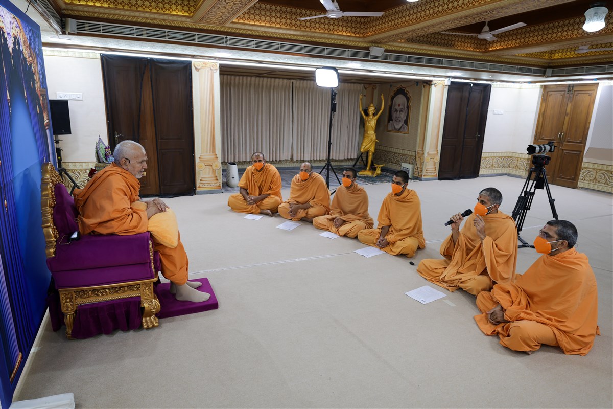 Pujya Dharmasetudas Swami asks Mahant Swami Maharaj a question