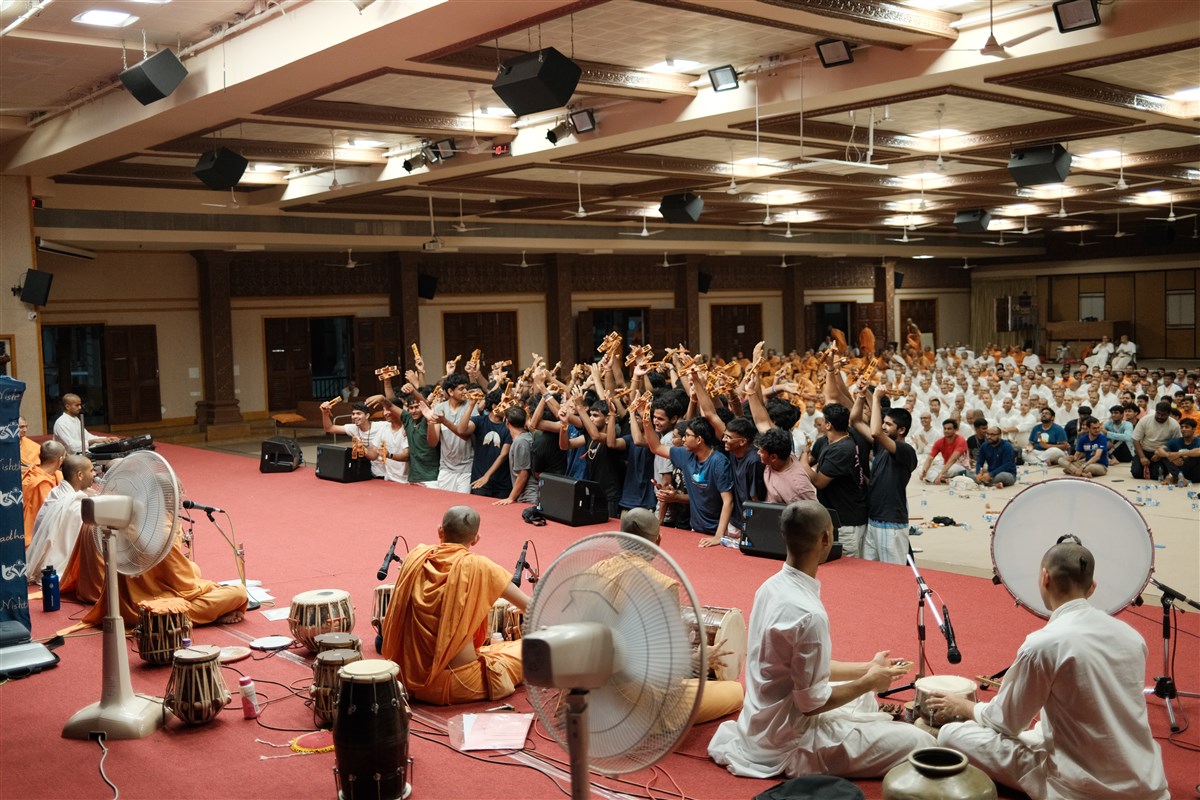 Delegates dance and rejoice as the kirtan aradhana concludes