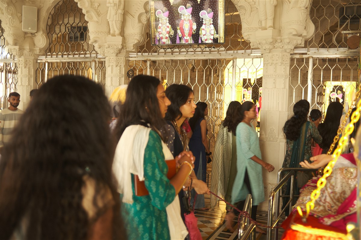 Delegates do darshan of the murtis as they are going to meet the swamis