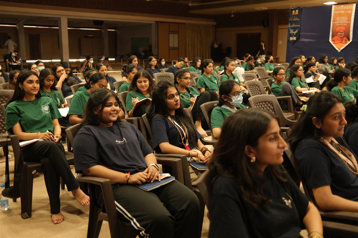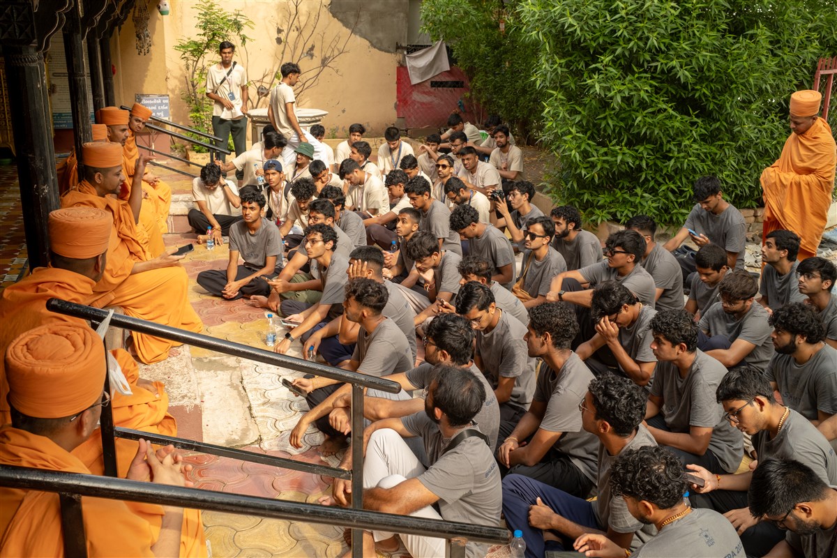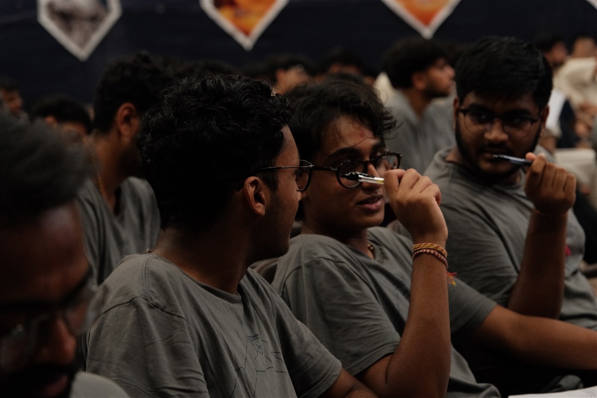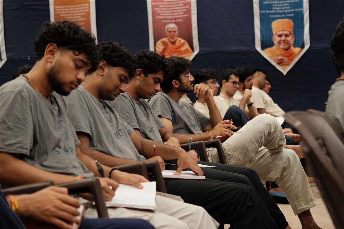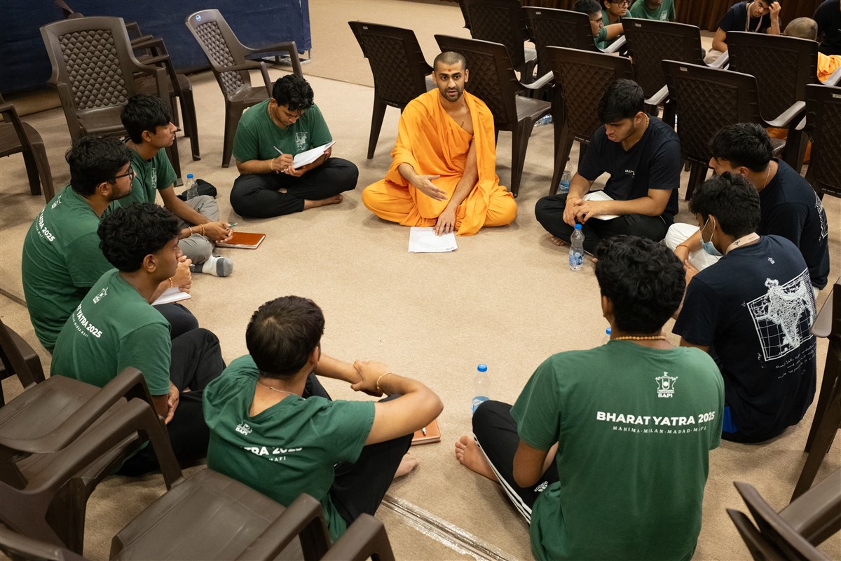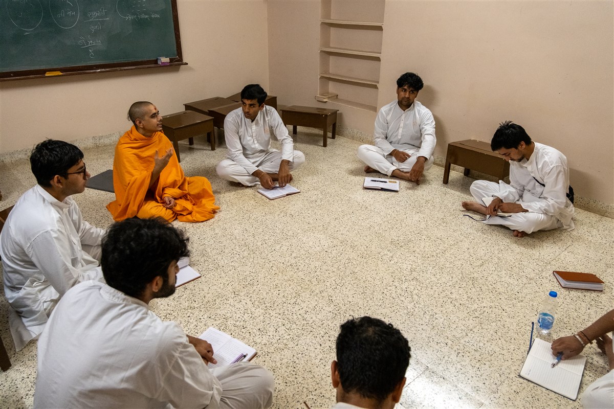 Swamis lead delegates in a discussion to recap and share important lessons learned from the shibir