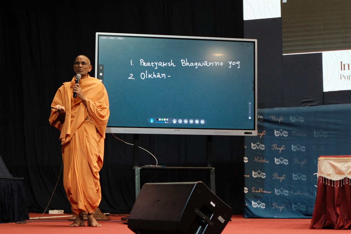 Pujya Atmatruptdas Swami breaks down how ‘Prapti’ is developed in three simple steps for the delegates
