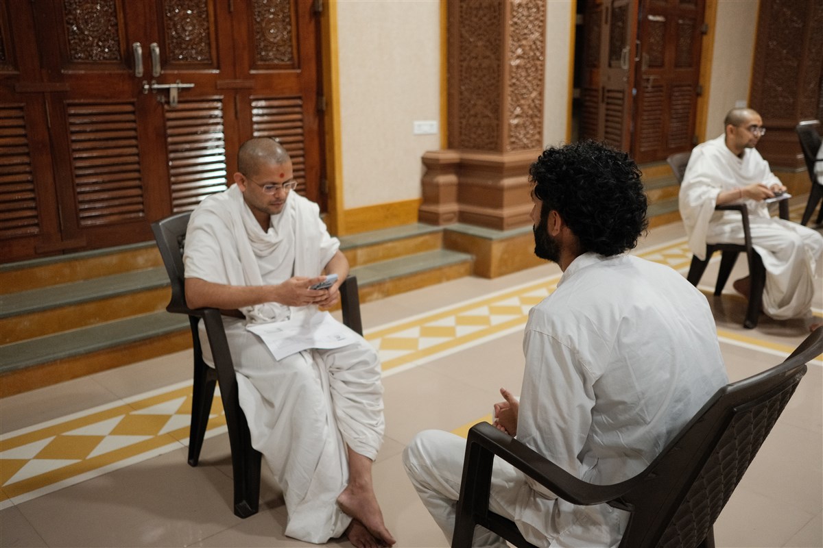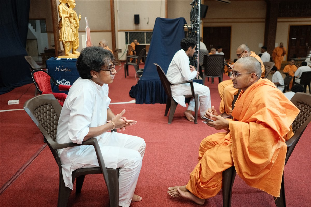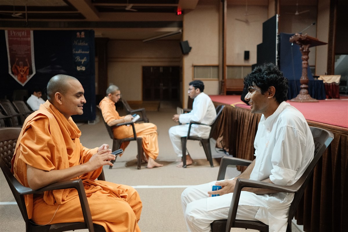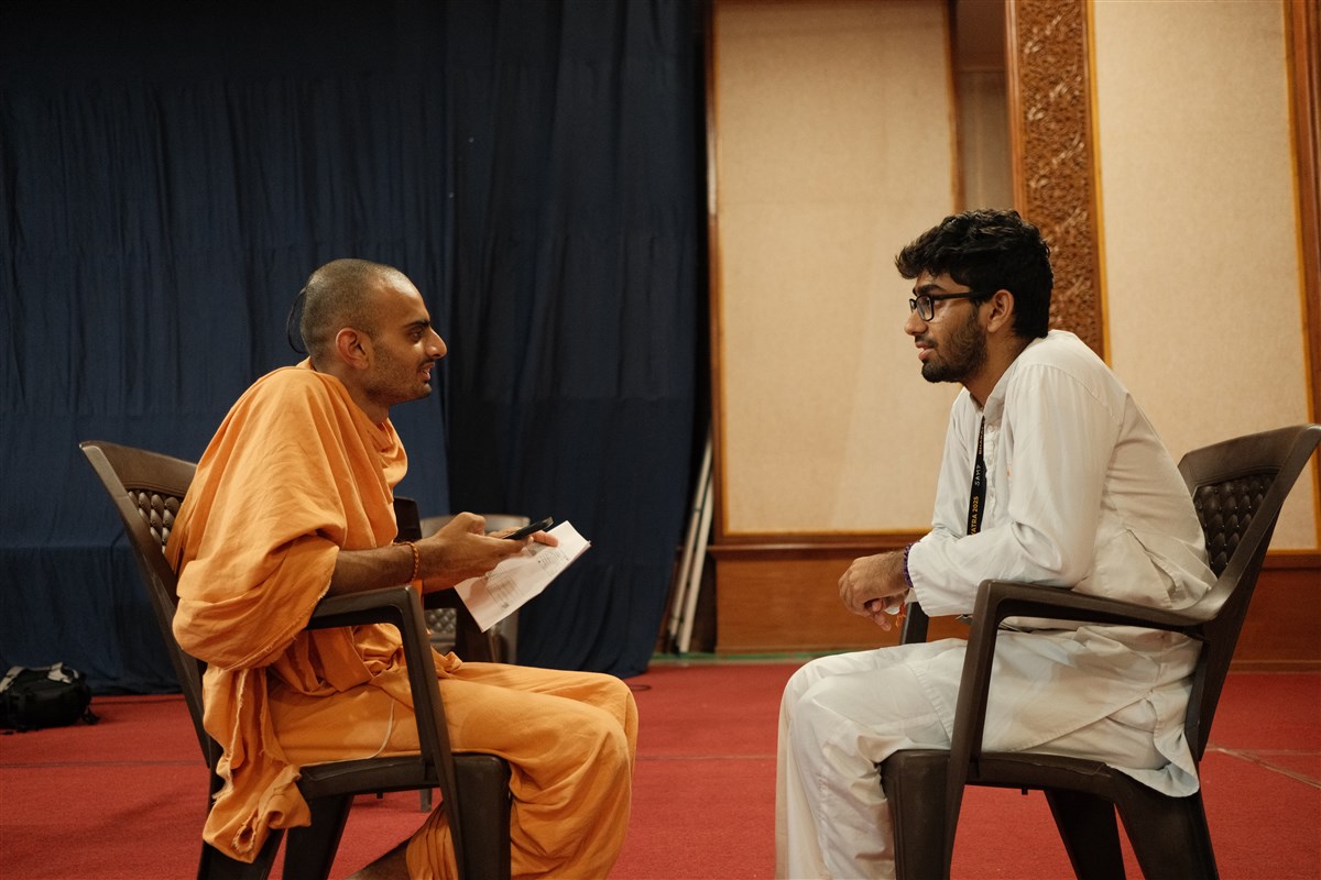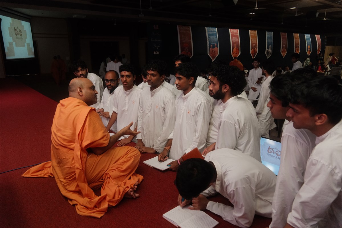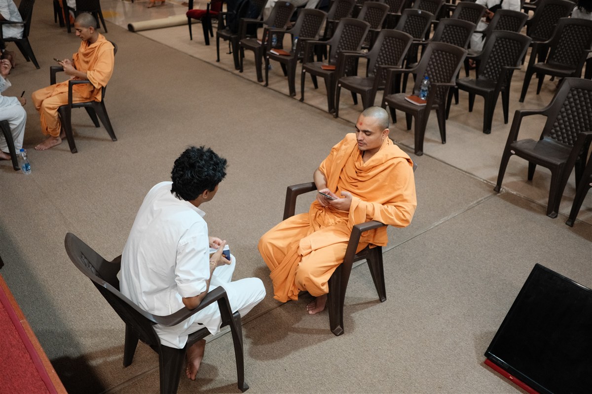 Delegates meet Pujya Viveksagardas Swami in between sessions to ask questions and clarifications about his lecture
