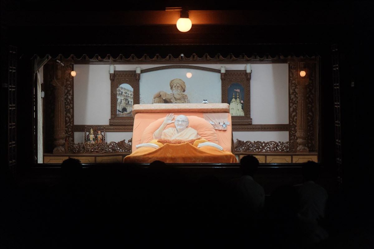 The delegates perform chestha in front of the bedroom of Brahmawarup Pramukh Swami Maharaj