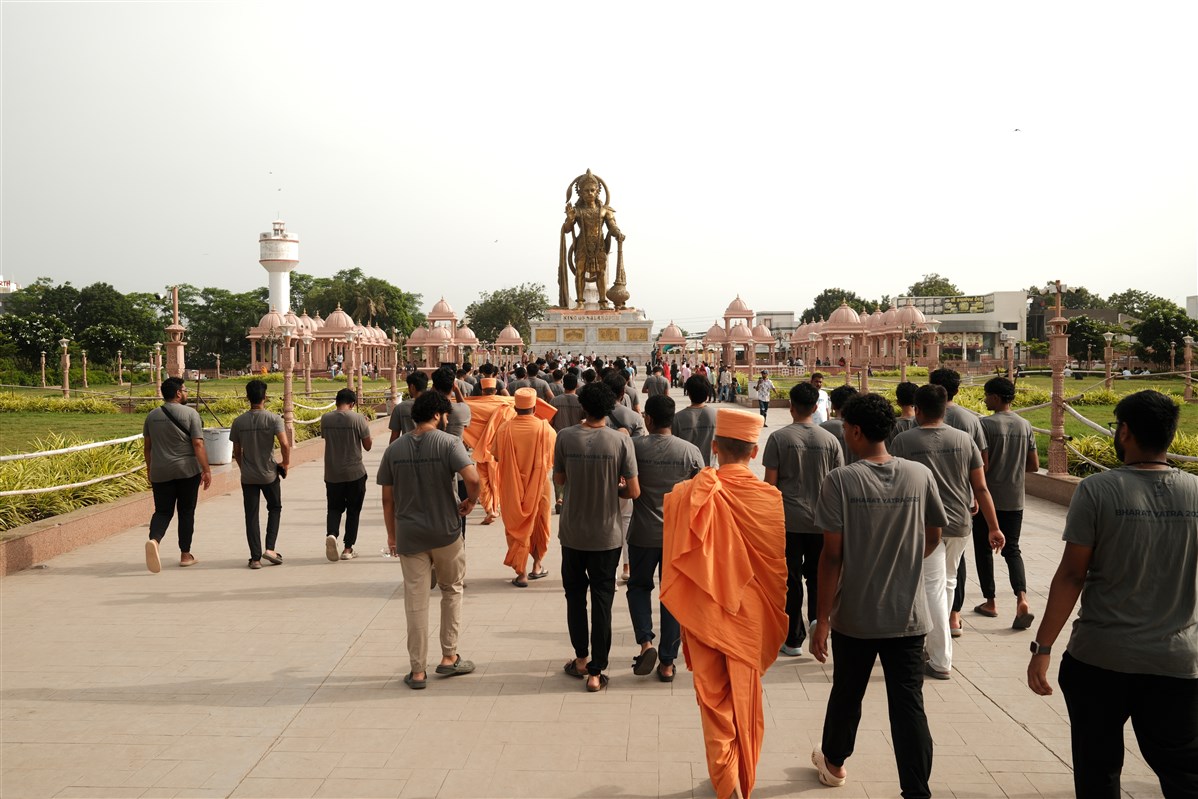 Swamis and Delegates walk to the iconic Hanumanji Murti in Sarangpur