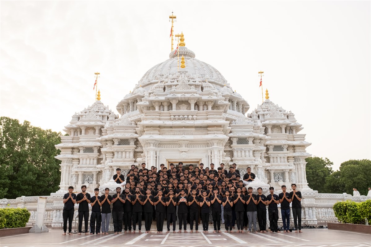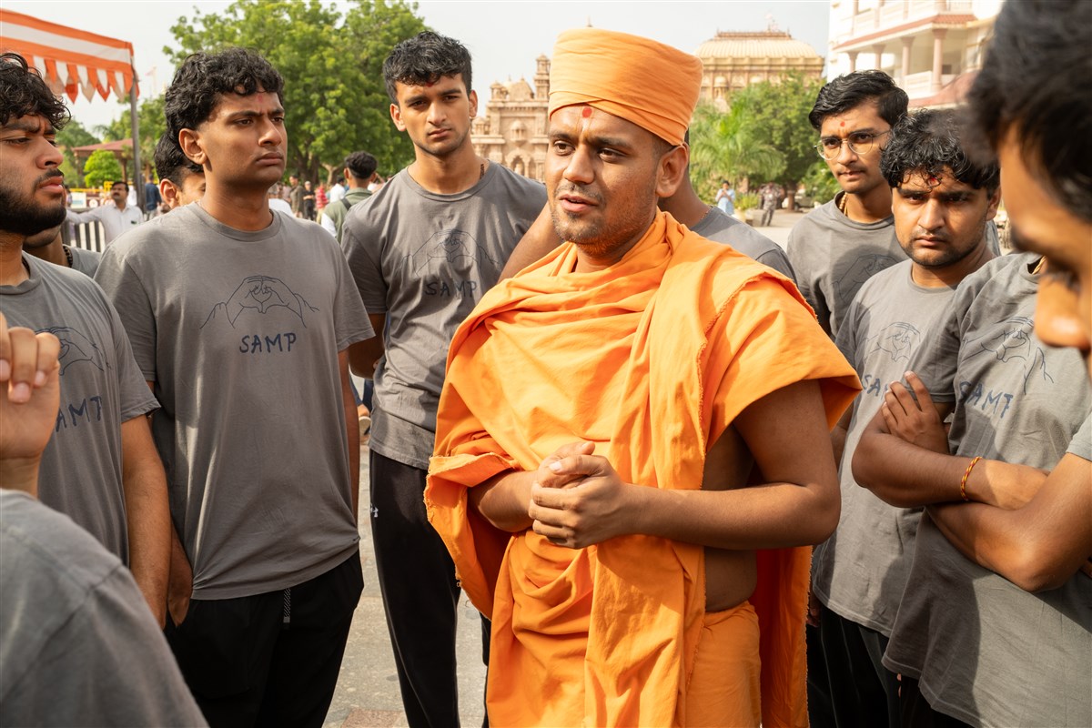 Delegates perform chesta inside Pramukh Swami Maharaj Smruti mandir