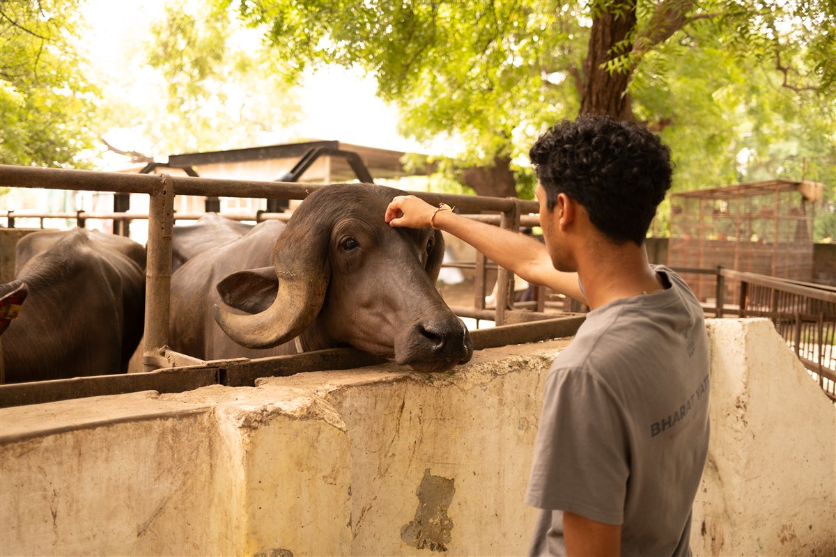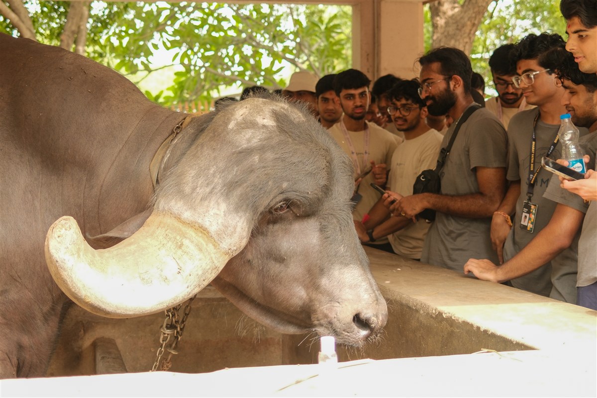 Delegates visit Yagnapurush Gaushala and see Rajnath, who is an award-winning buffalo