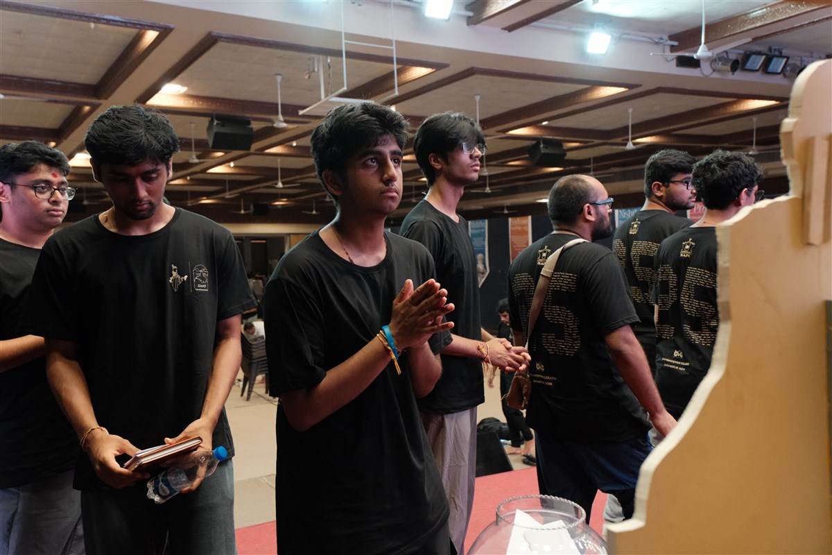 Some of the delegates perform a prayer and make a promise to imbibe the teachings from the shibir