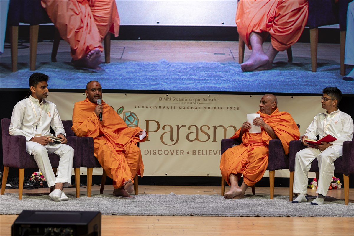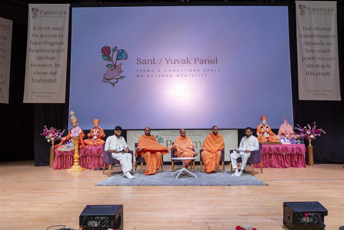 A sant–yuvak panel with Anandpriyadas Swami and Yagnatilakdas Swami on ‘Comfortably Lost: Beyond Checking Boxes,’ urged delegates to rise above mechanical bhakti and comfort-zone satsang