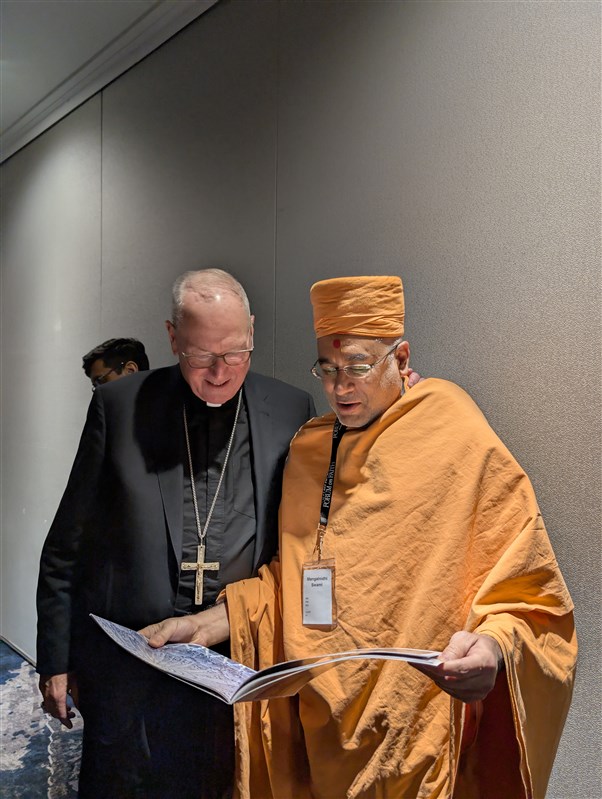 Pujya Mangalnidhidas Swami in conversation with His Eminence Cardinal Timothy Dolan