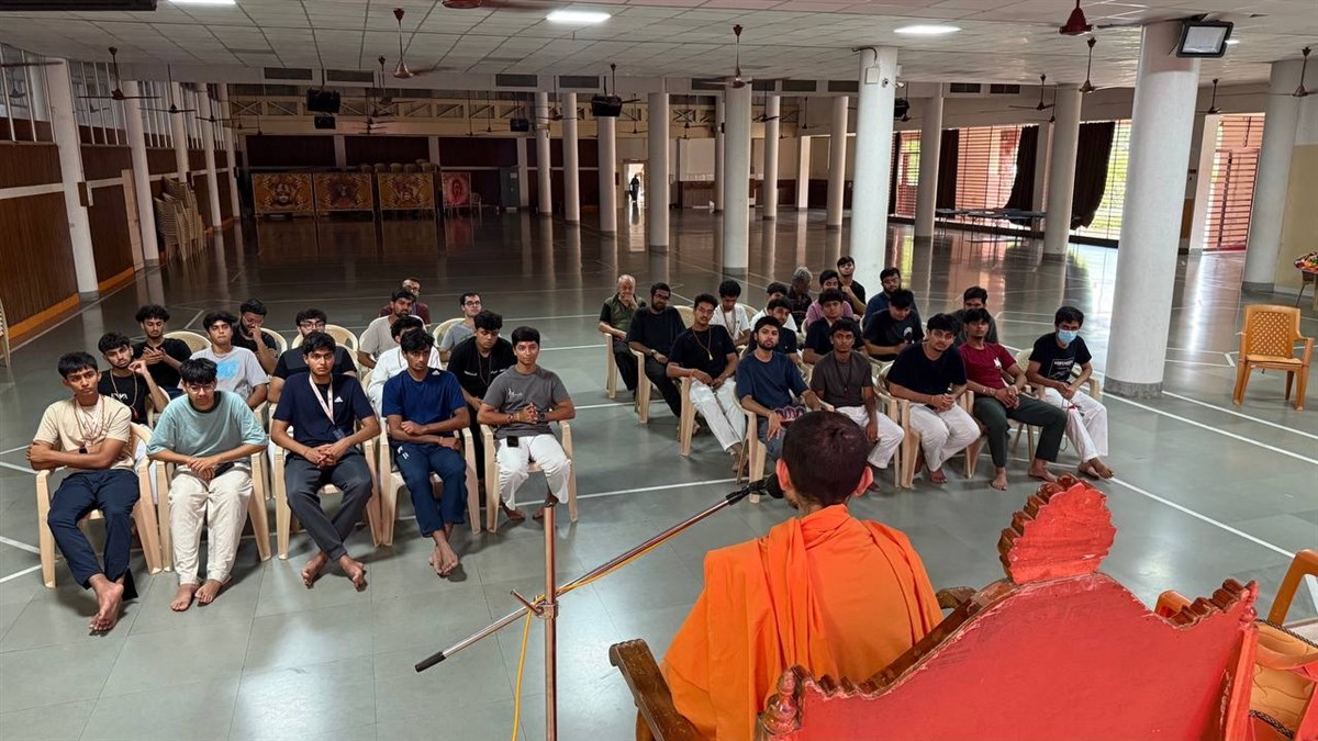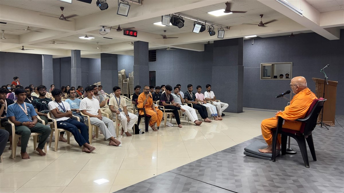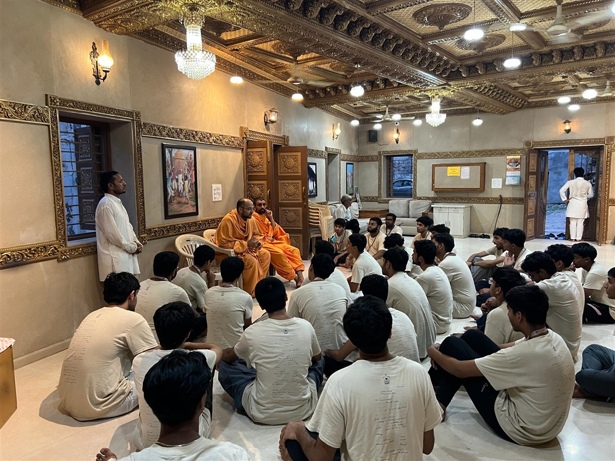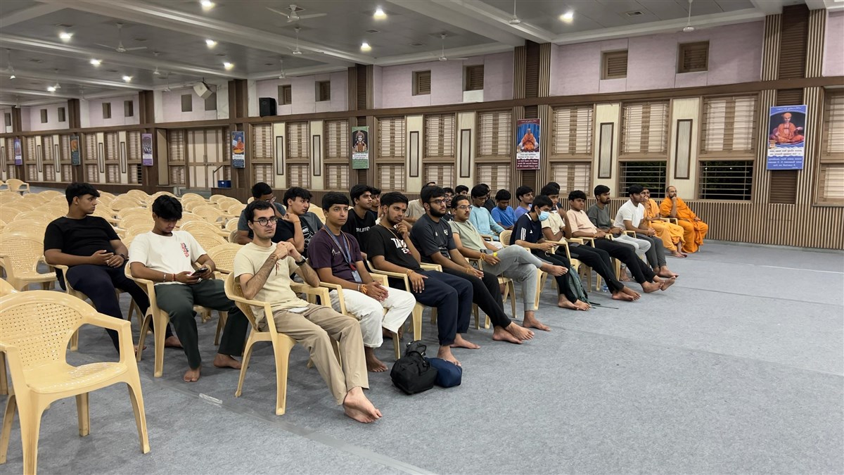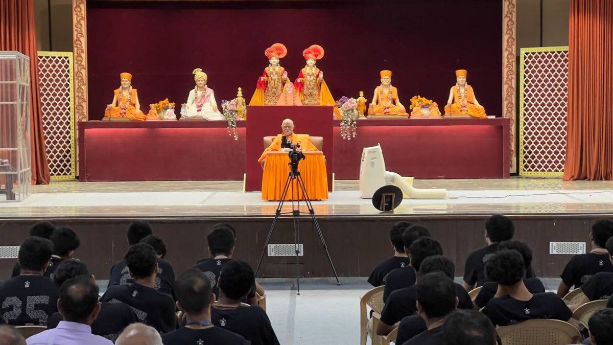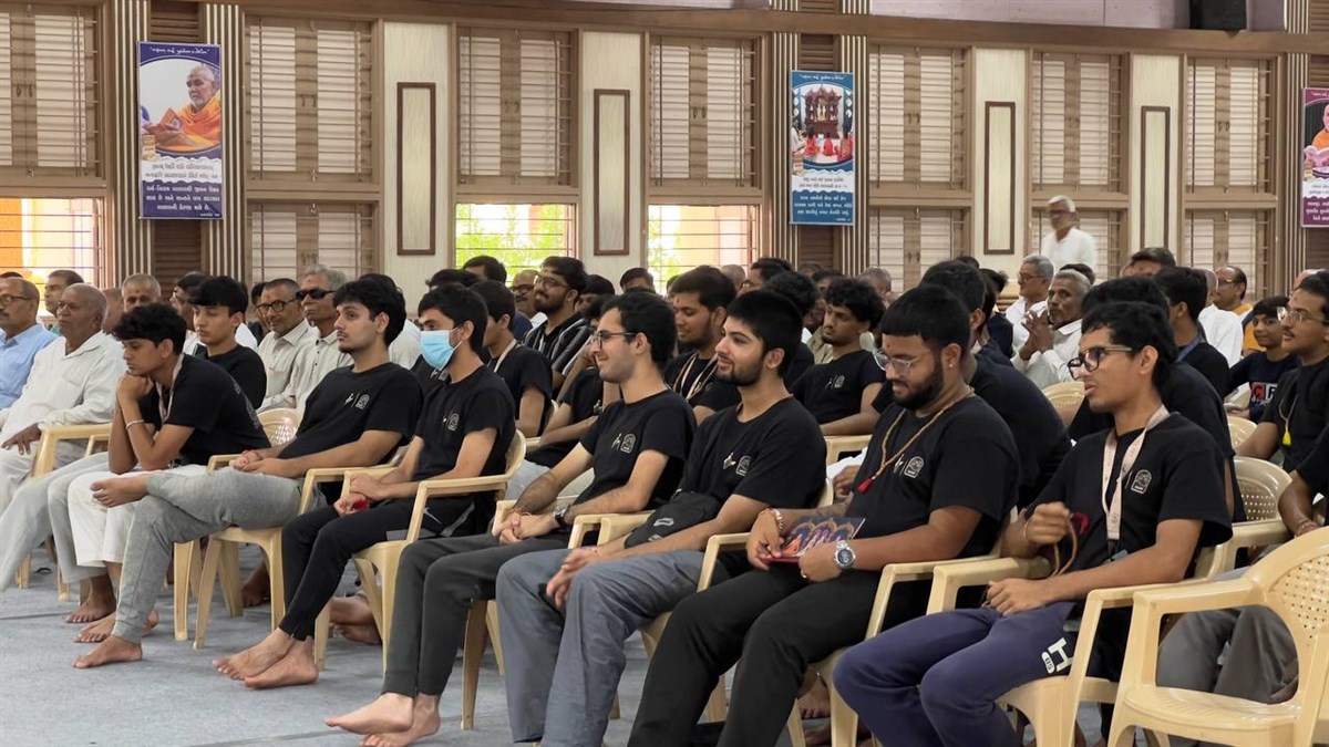 Delegates take part in a special sabha with Sadguru Pujya Viveksagar Swami during their time in Bochasan