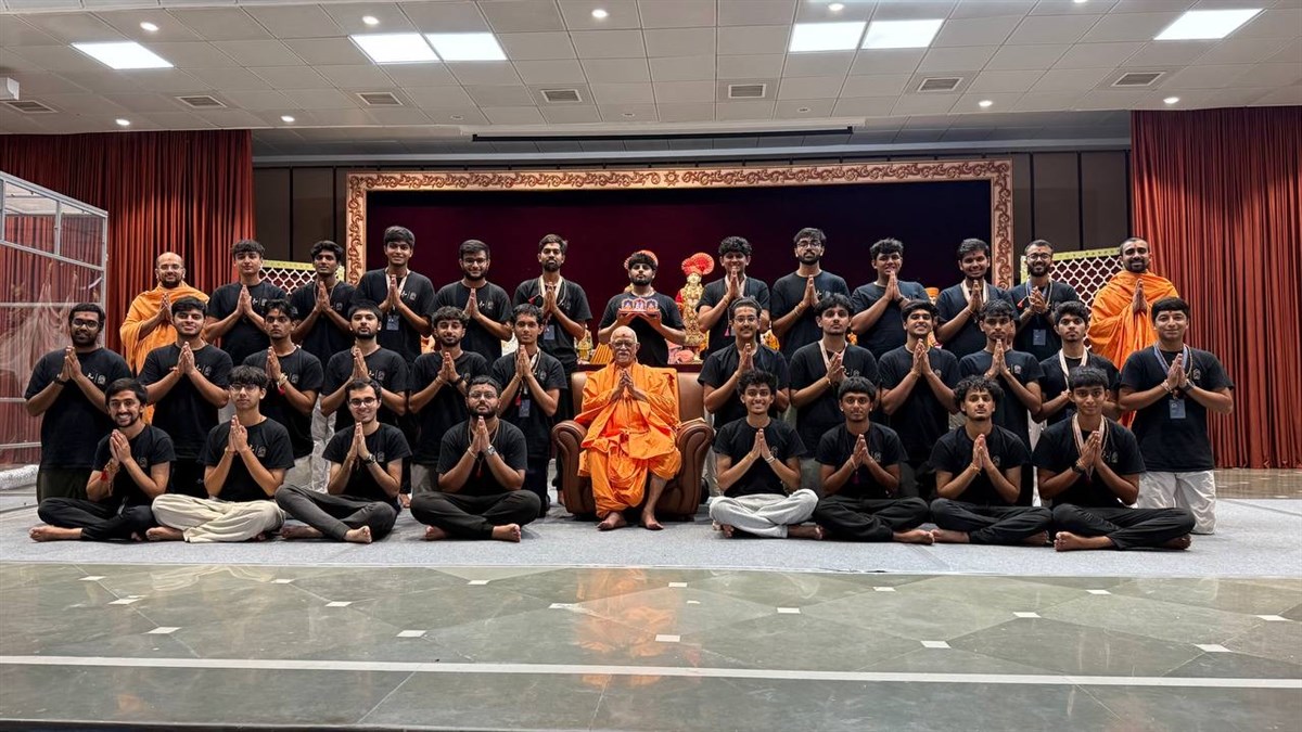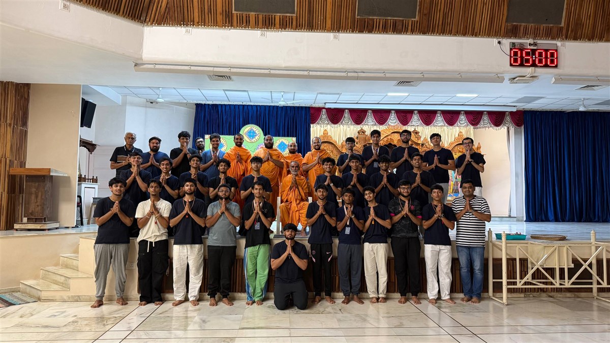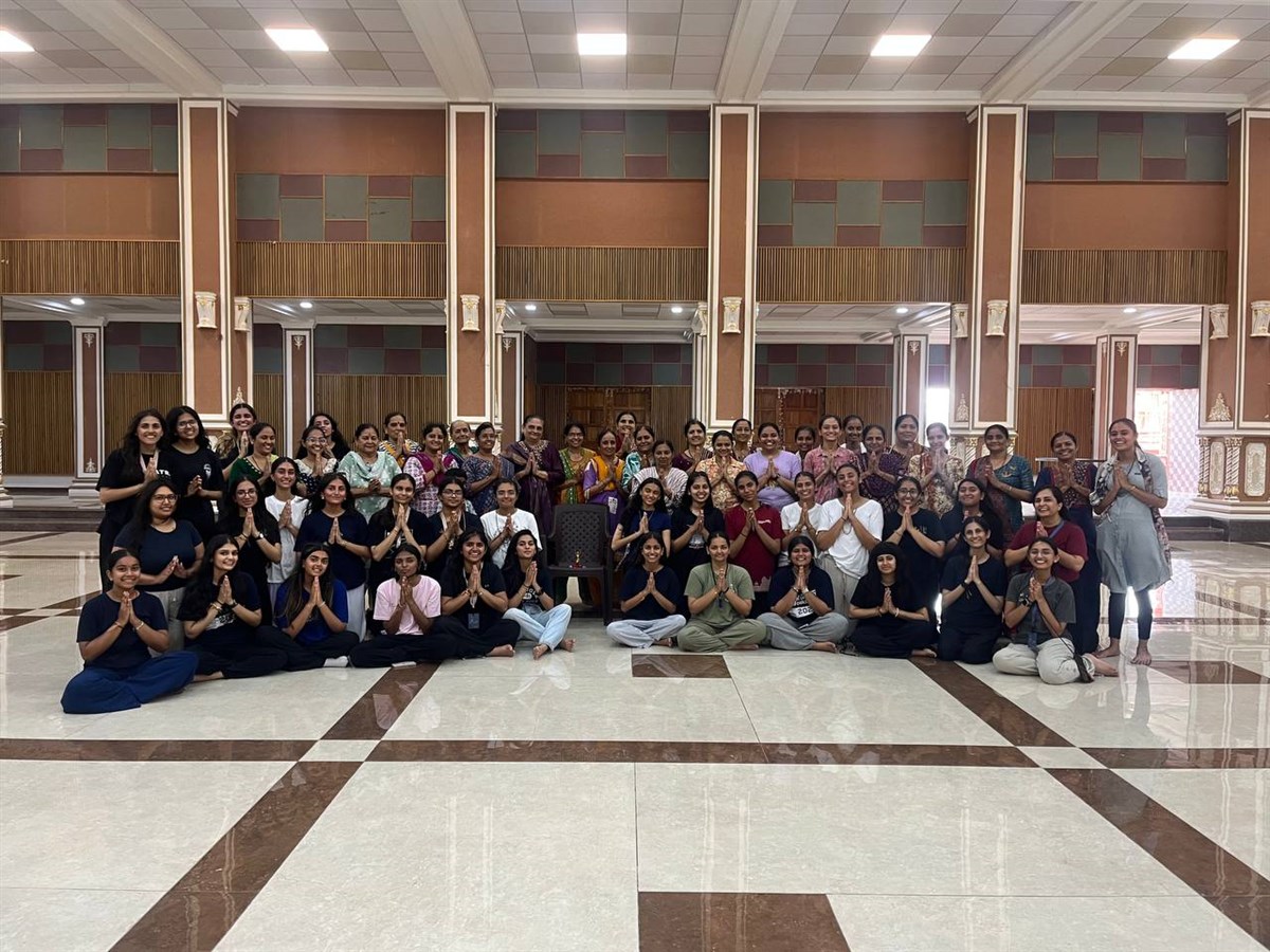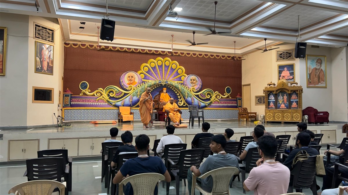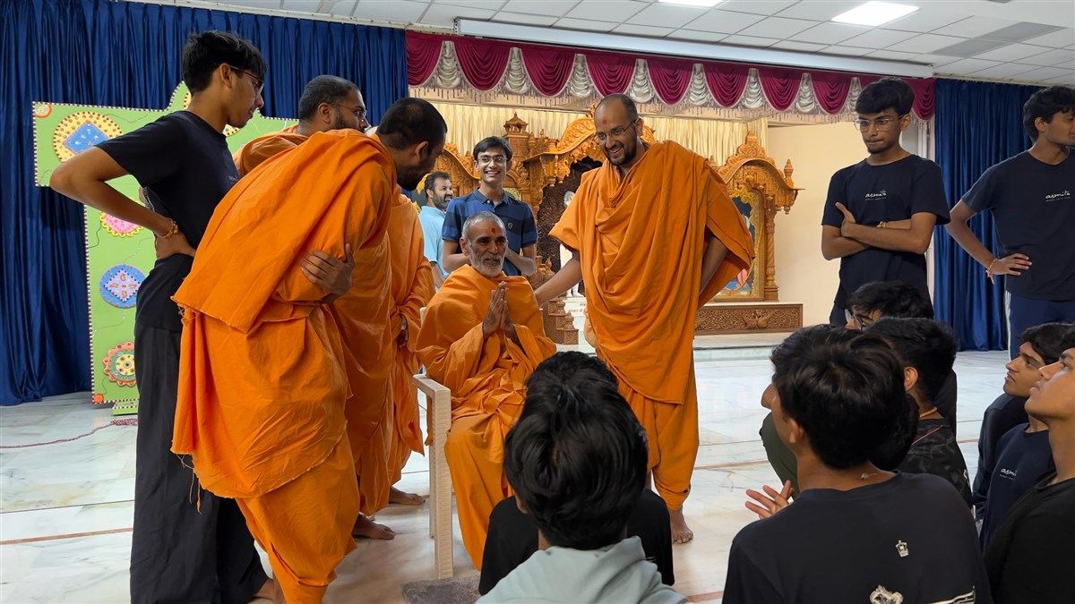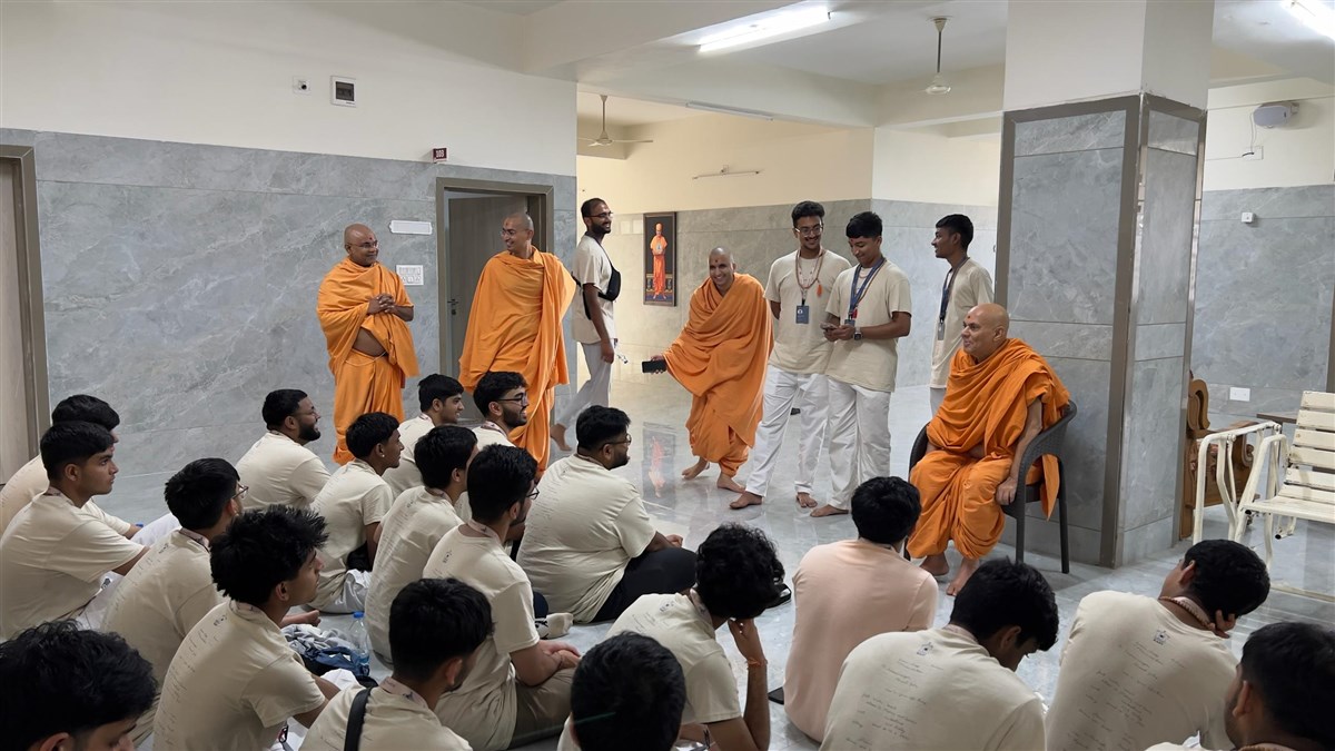 Delegates take part in a special sabha with Sadguru Pujya Viveksagar Swami during their time in Bochasan