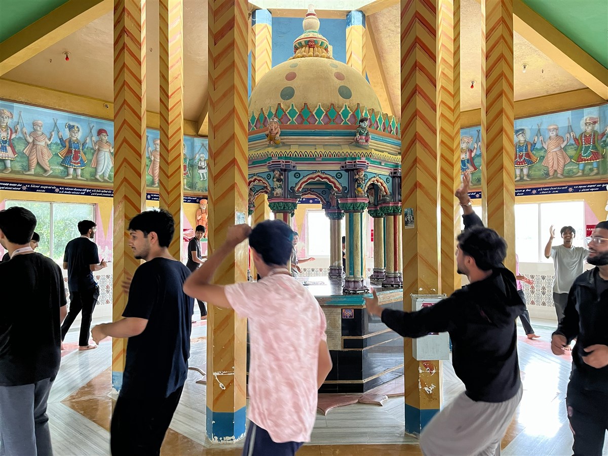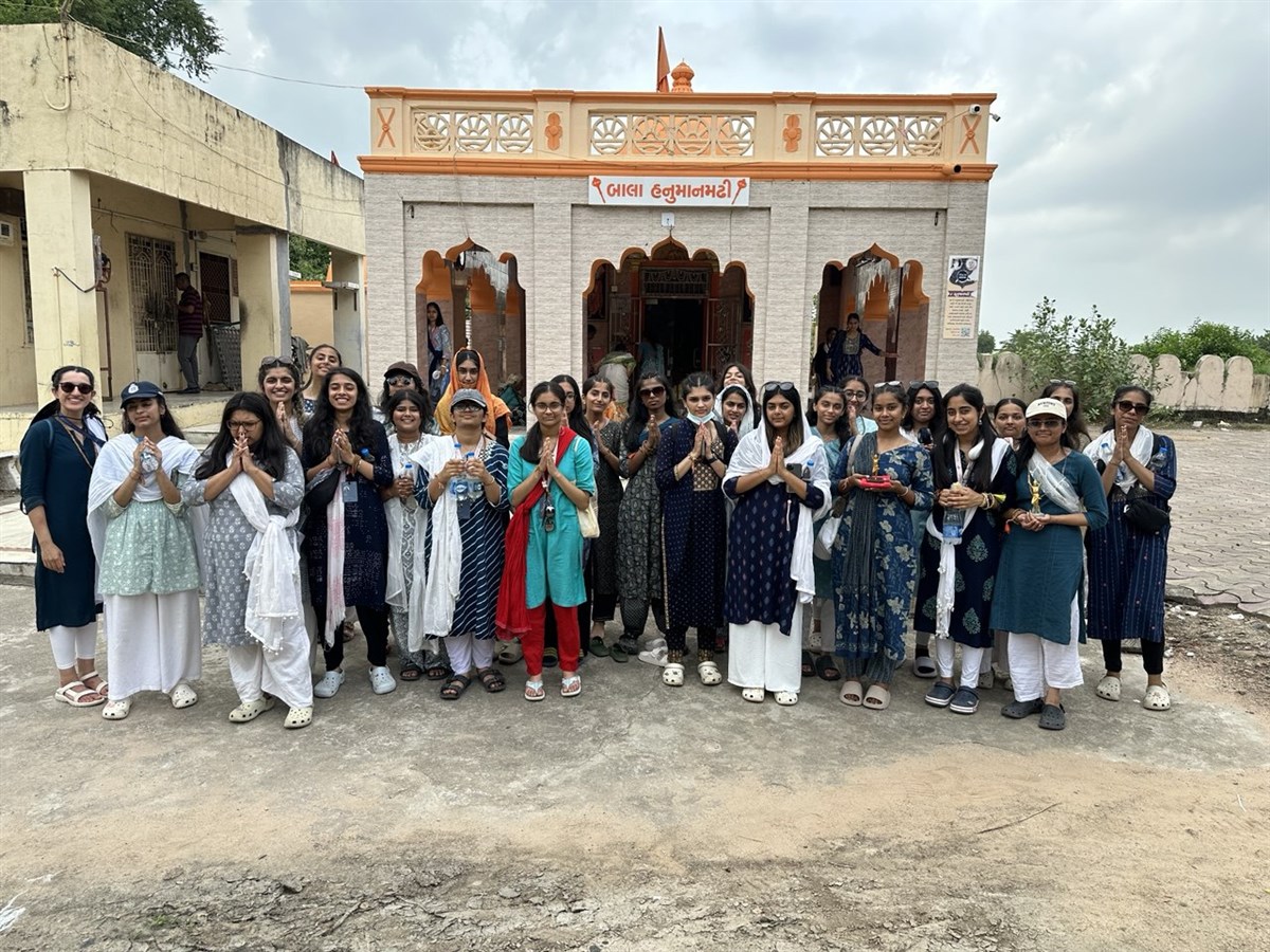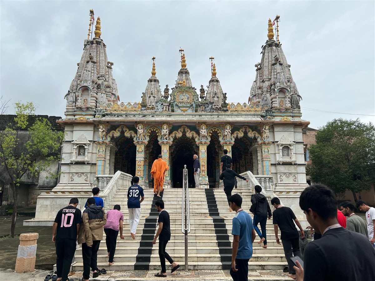 Group photo outside BAPS Shri Swaminarayan Mandir in Dabhan