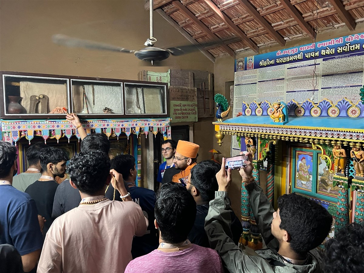 Delegates visit the home of Bhagatji Maharaj in Mahuva, where he was born and where he also returned to Akshardham