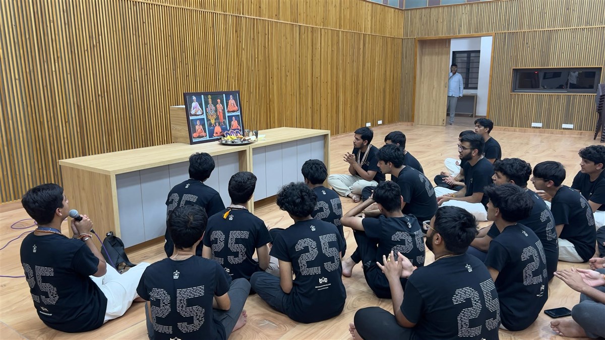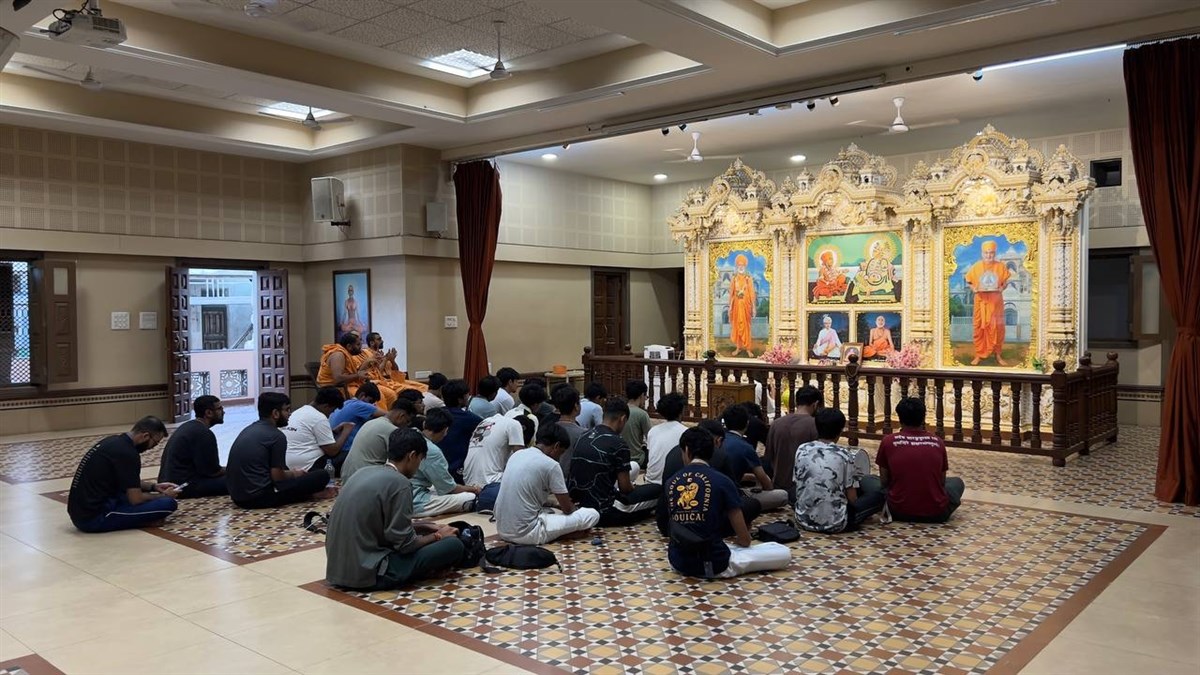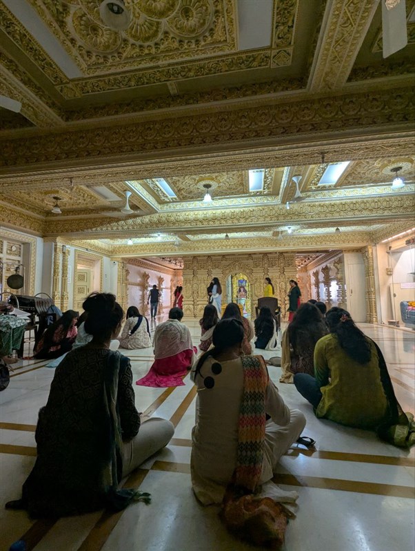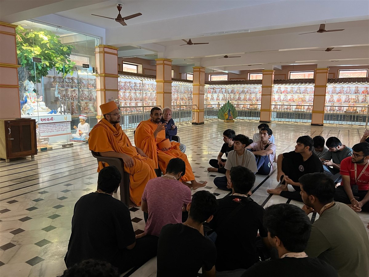 Delegates engage in a goshthi at BAPS Shri Swaminarayan Mandir, Ahmedabad