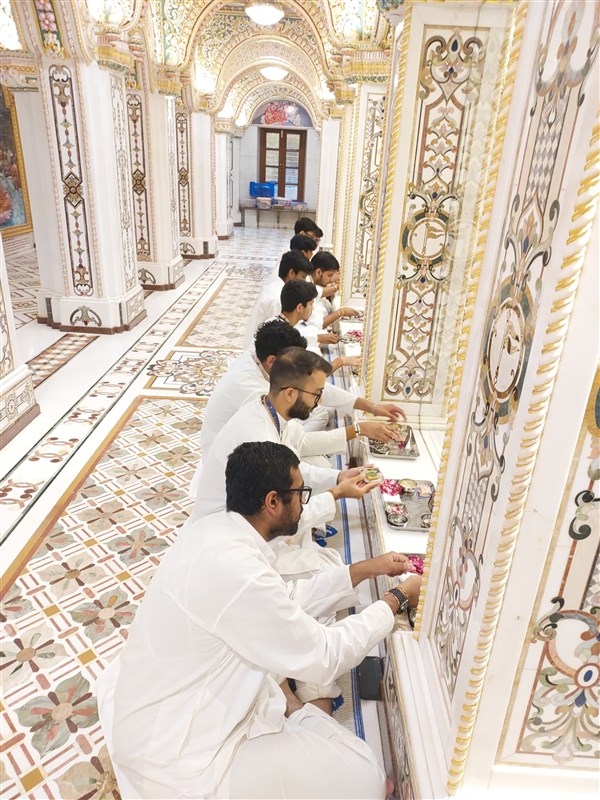 Delegates offer thaal with devotion as part of the seva of Shri Akshar-Purushottam Maharaj in Bochasan