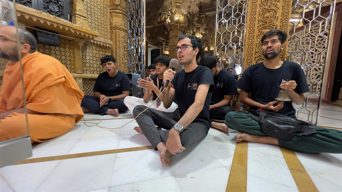 Swamis and delegates sing the cheshta at Bhagatji Maharaj Smruti Mandir, Mahuva