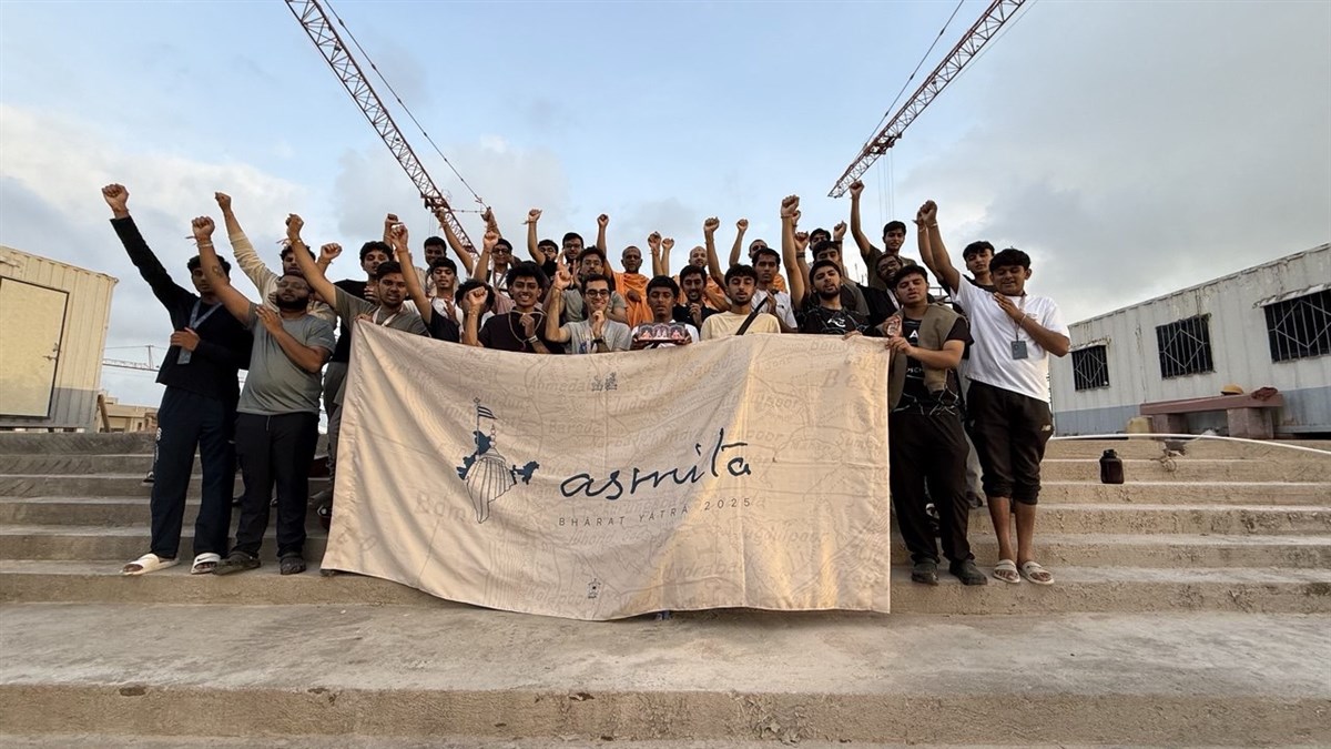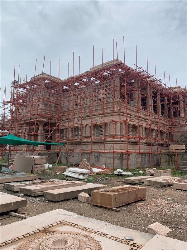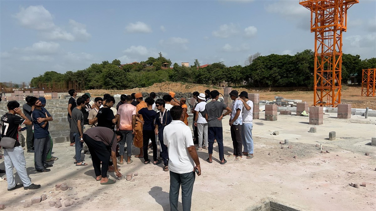 Group photo outside the under-construction Swaminarayan Akshardham, Kanad, Surat