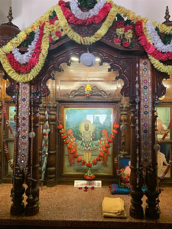 Sacred ghar mandir and murtis at Shastriji Maharaj’s birthplace, Mahelav