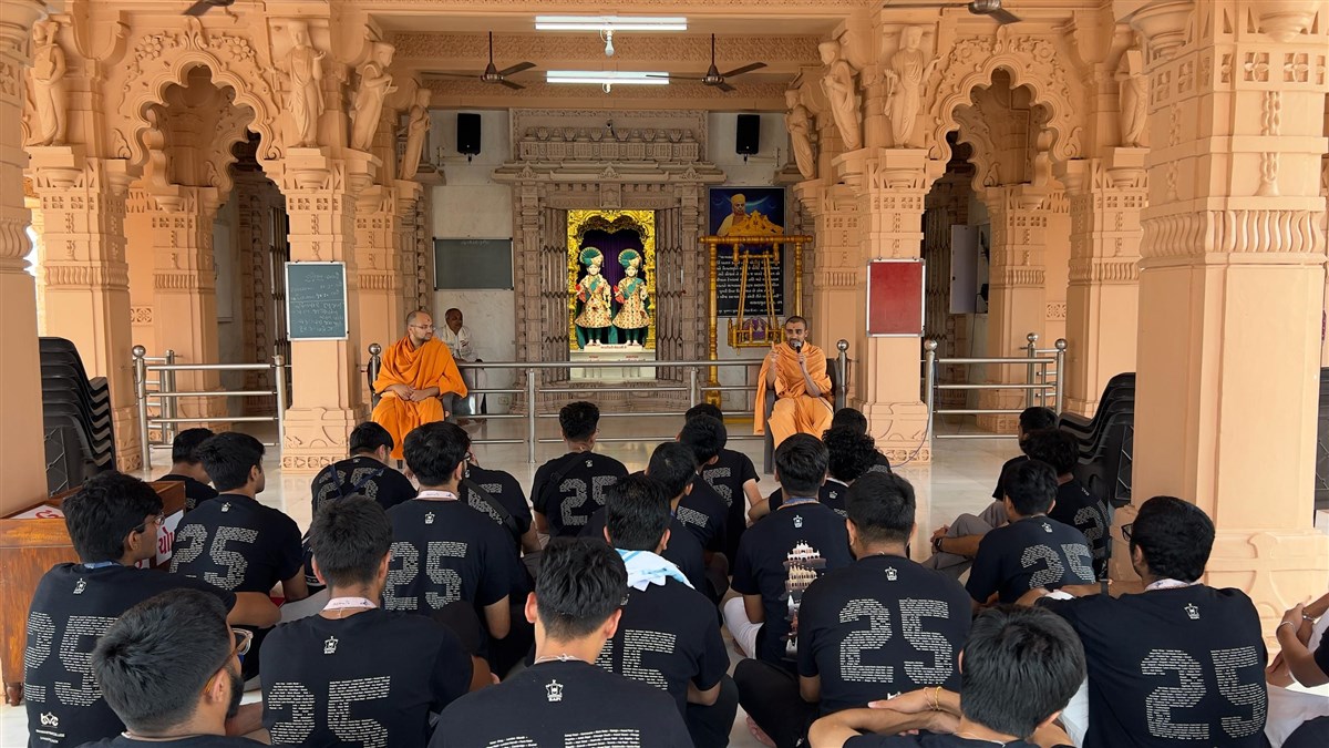 Delegates learn about the mahima of BAPS Shri Swaminarayan Mandir, Dabhan