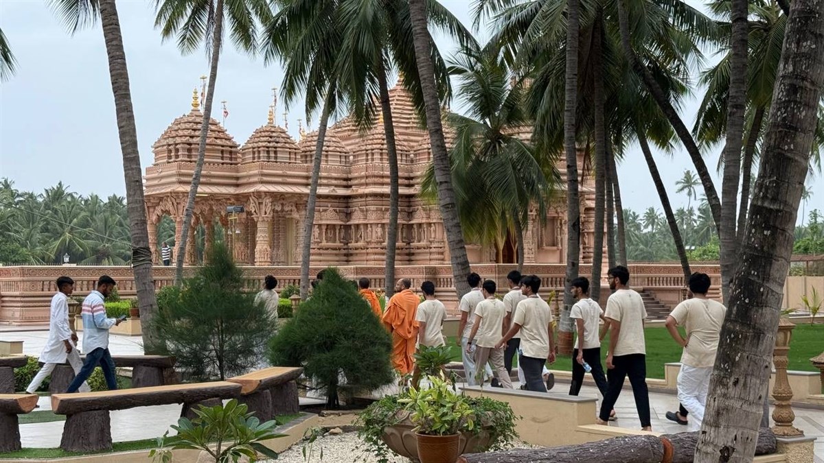 Delegates visit the small BAPS Shri Swaminarayan Mandir in Dholera to mark the beginning of their yatra around Saurashtra