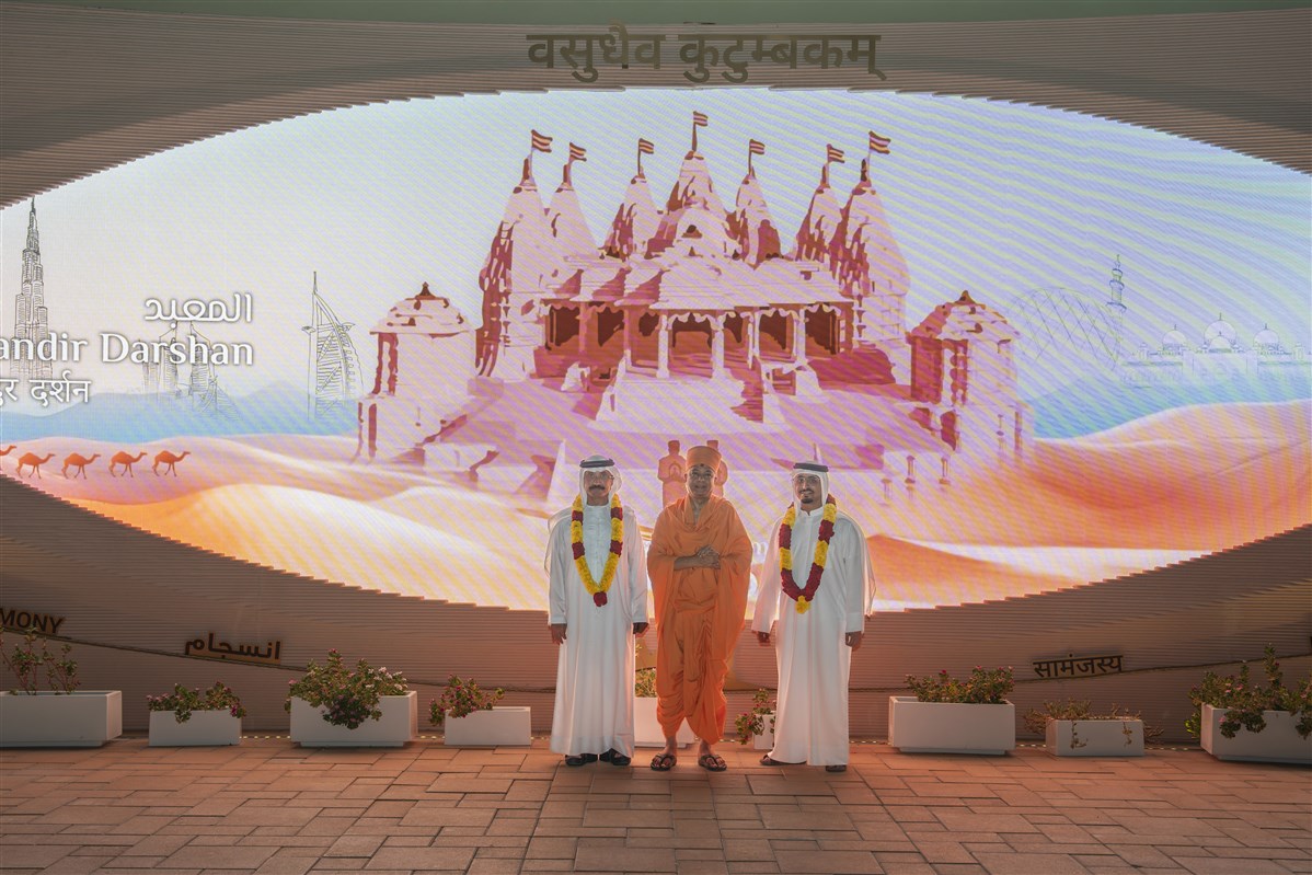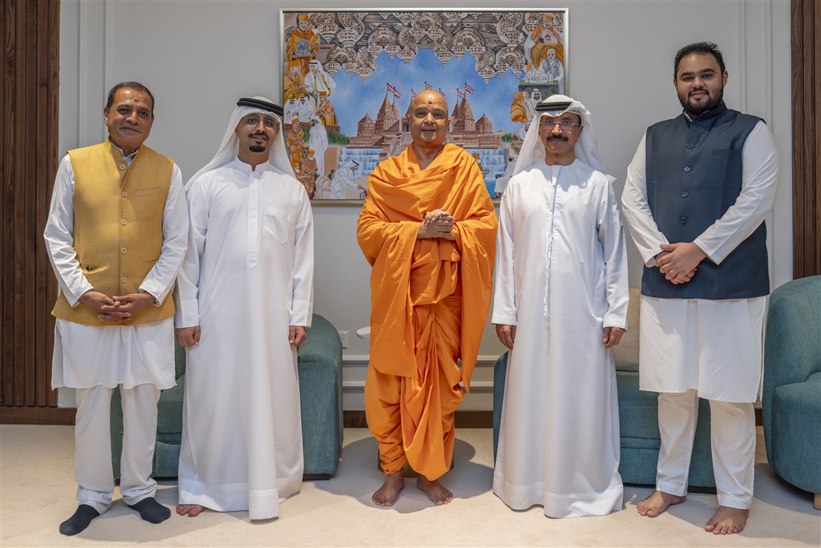 Swami Brahmaviharidas welcomes Sultan Ahmed bin Sulayem, CEO of DP World and Chairman of the Ports, Customs & Free Zone Corporation