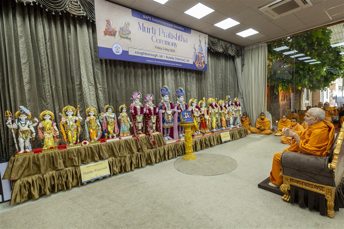 On 2 May 2025, Guruhari Mahant Swami Maharaj consecrated the new murtis to be installed at Loughborough Mandir in Kanad, Surat