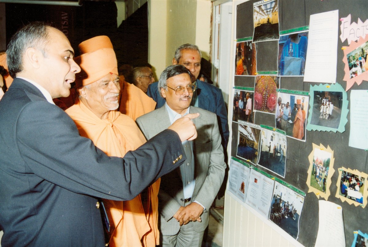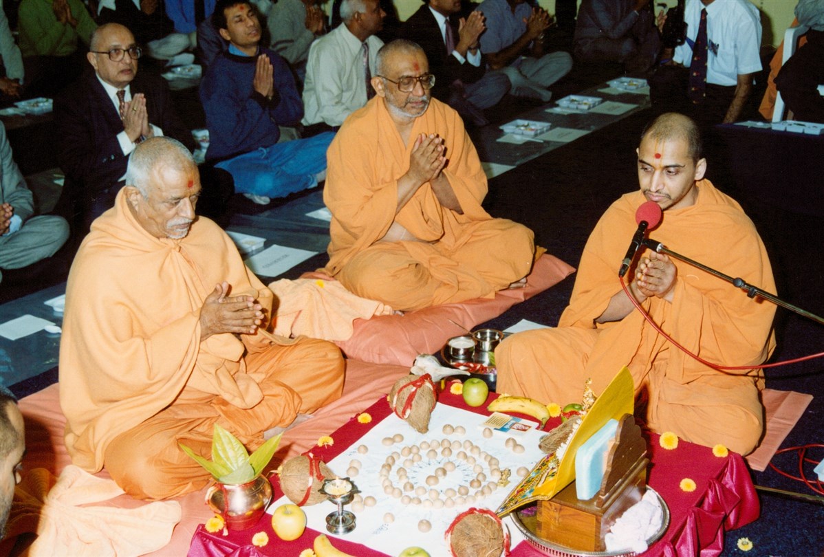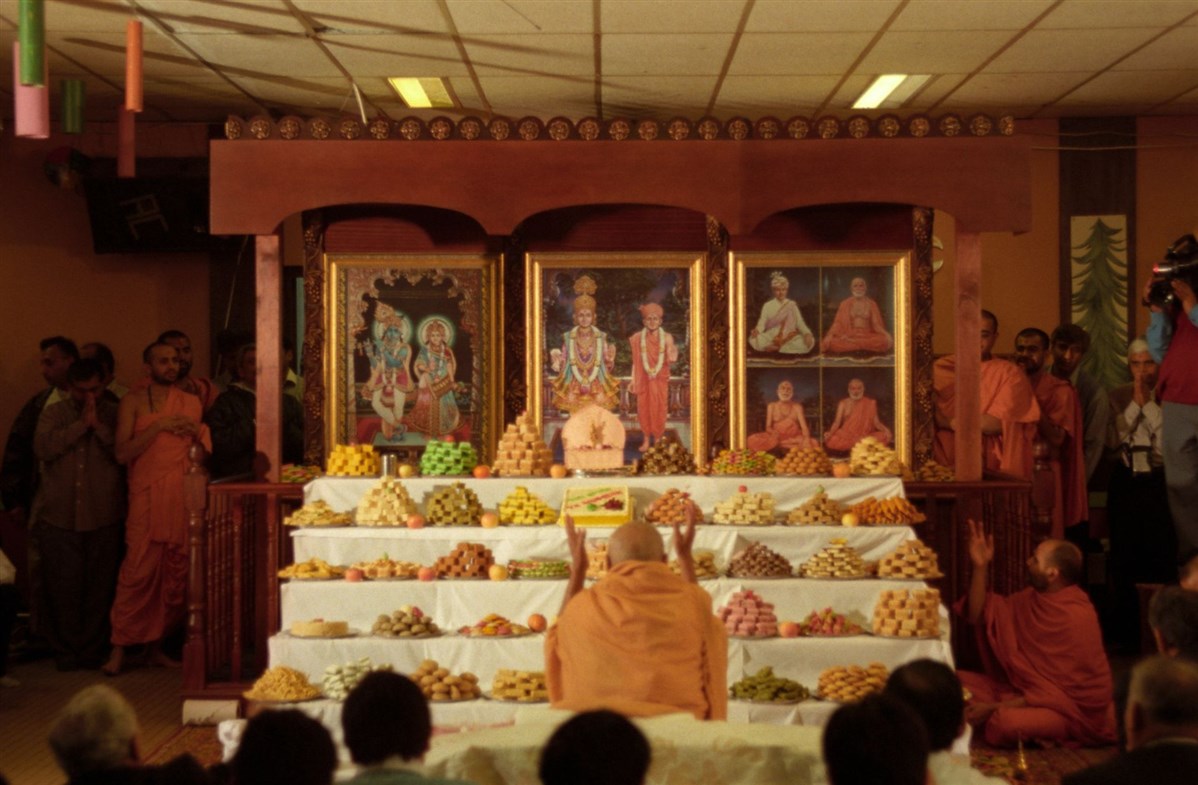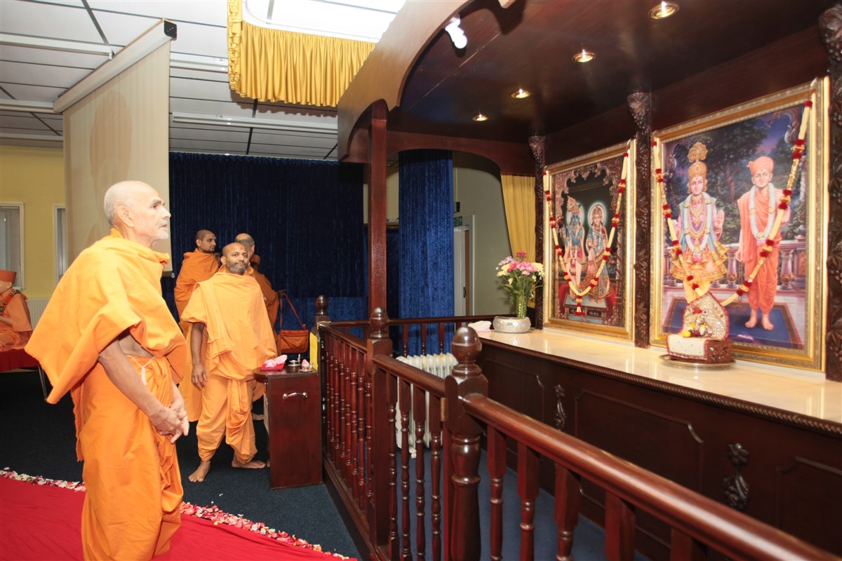In 1997, Brahmaswarup Pramukh Swami Maharaj performed the consecration ceremony of the murtis in Paris, which were later ceremonially installed in Loughborough