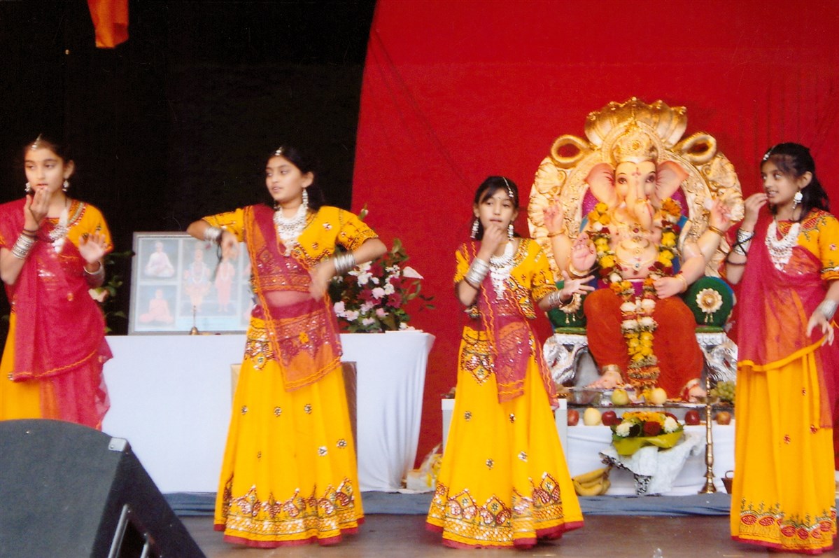 Young children perform a cultural dance during a Hindu festival