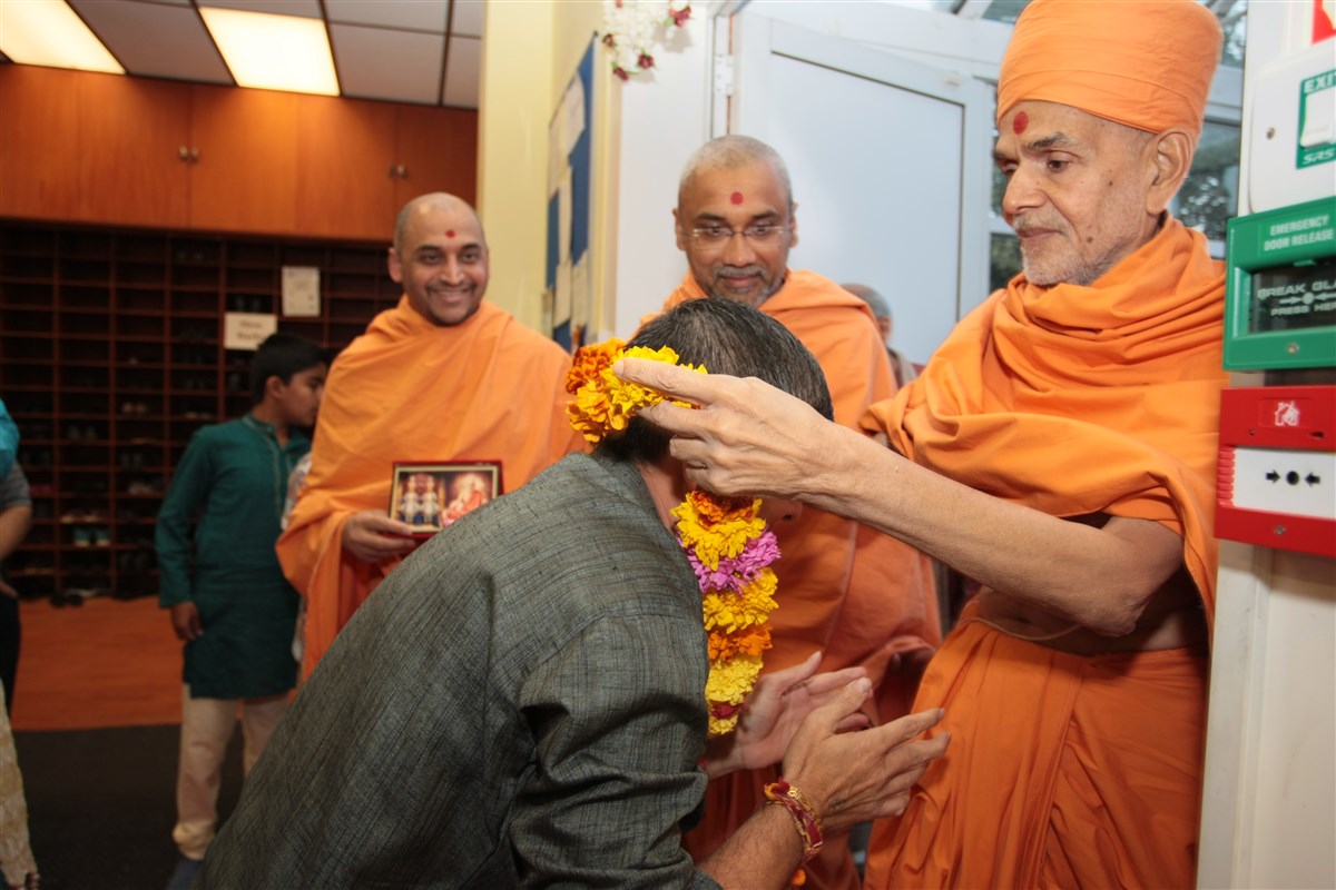 Sadguru Pujya Mahant Swami doing darshan at Loughborough Mandir on 11 September 2015