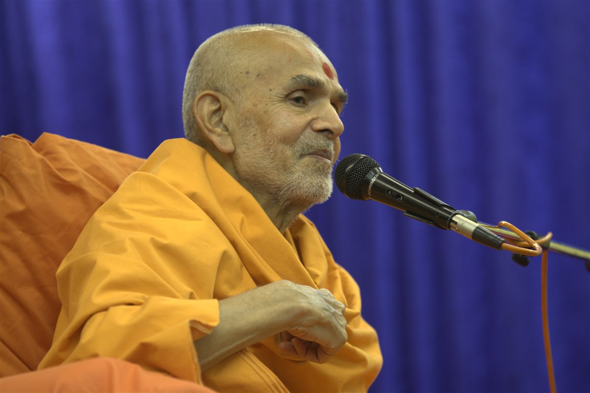 Sadguru Pujya Mahant Swami addressing the sabha at Loughborough Mandir on 11 September 2015