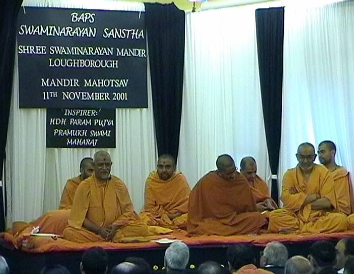 On 11 November 2001, the murtis were ceremonially installed at Loughborough Mandir in the presence of Sadguru Pujya Doctor Swami and hundreds of devotees, marking the official opening of the mandir