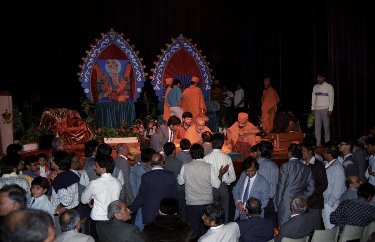 In 1988, Brahmaswarup Pramukh Swami Maharaj graced Loughborough again, and a grand sabha was held at the town hall in the presence of hundreds of devotees
