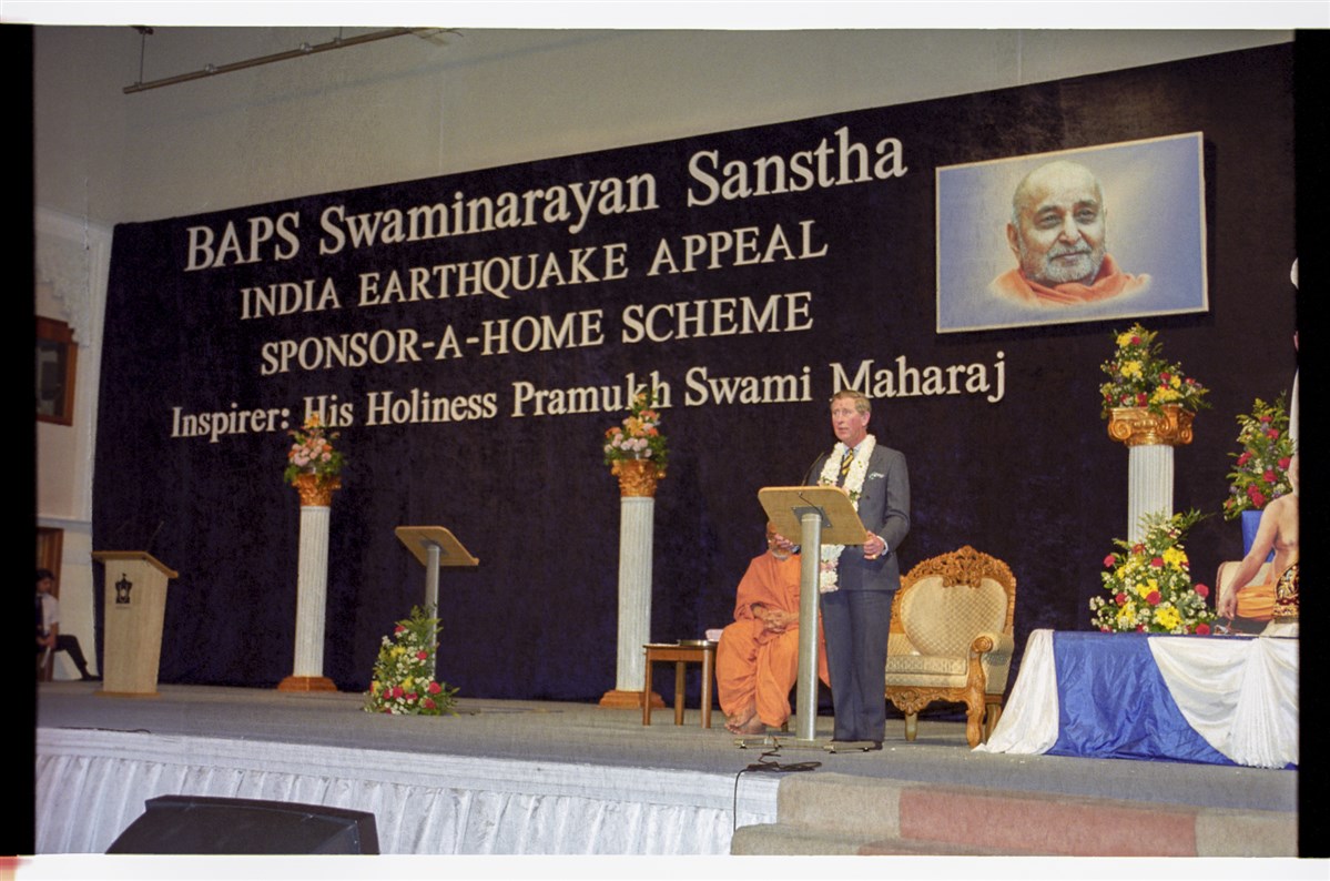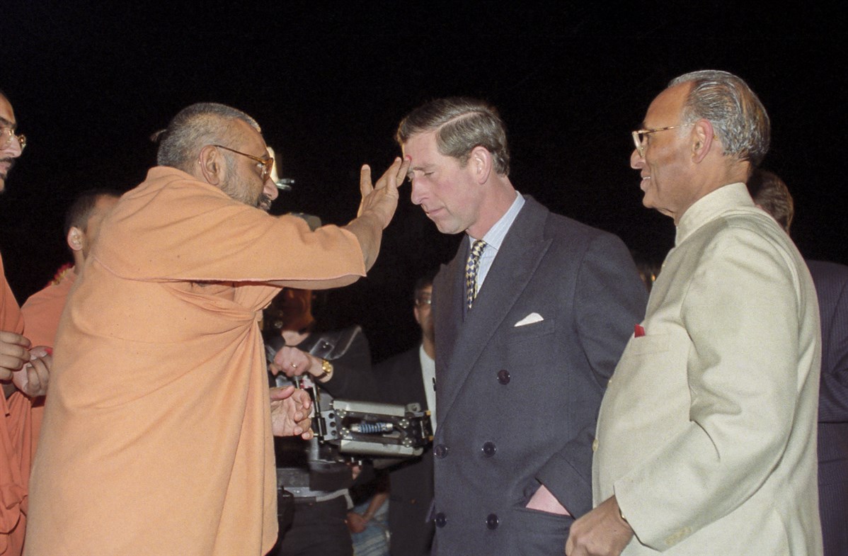 The very first interaction with His Majesty King Charles III from BAPS was in 1981 (30 October), at Wembley Conference Centre, when Prafulbhai Patel and G Patel presented a gold souvenir coin to the then Prince Charles that commemorated the bicentenary of Bhagwan Swaminarayan