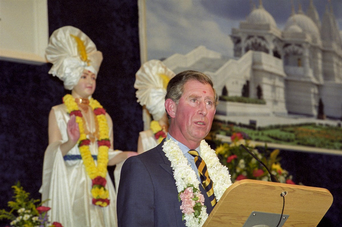 His Majesty King Charles III first visited Neasden Temple in 1996, as The Prince of Wales, when he was welcomed in a traditional Hindu manner with marks of auspiciousness, goodwill, and friendship