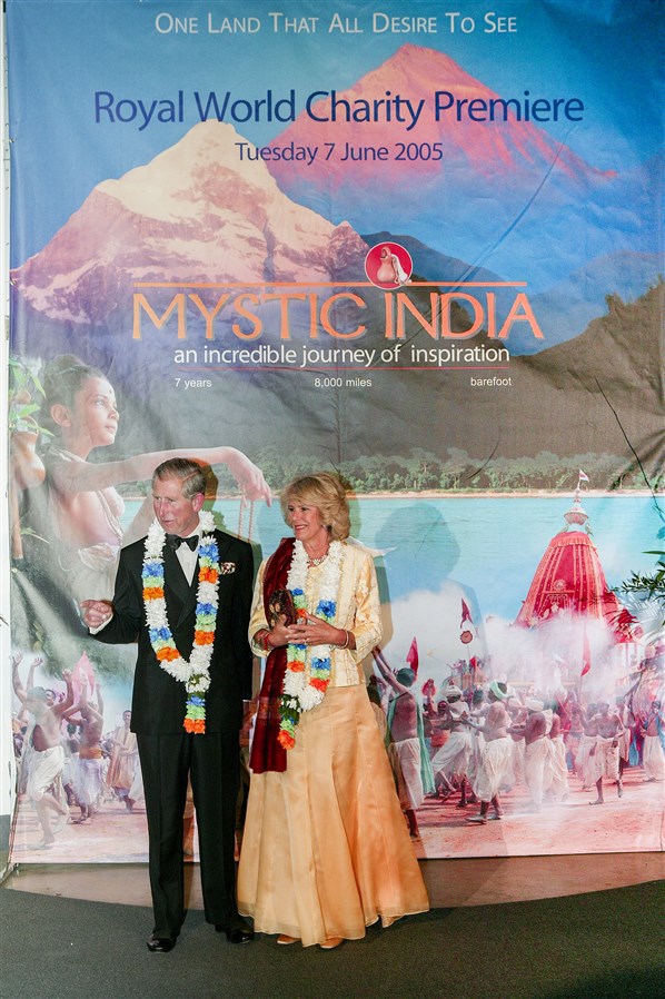 HM The King accompanied by HM The Queen, as the Prince of Wales and the Duchess of Cornwall, attended the Royal World Charity Premiere of the large-format film, Mystic India, at the London Science Museum in 2005