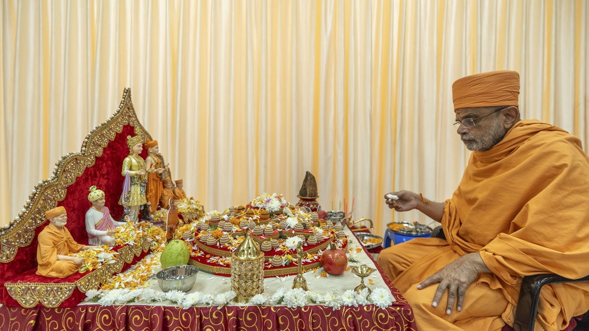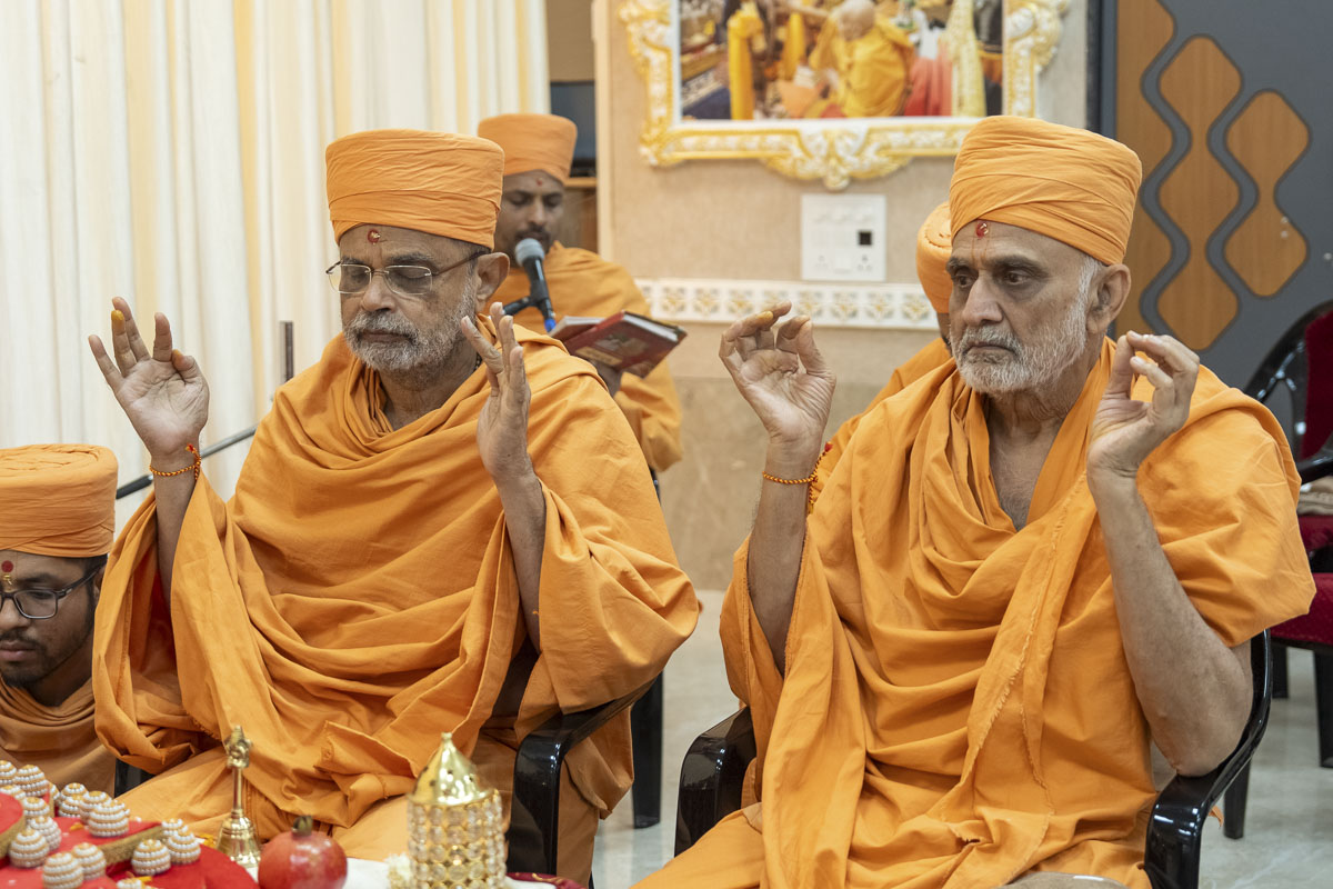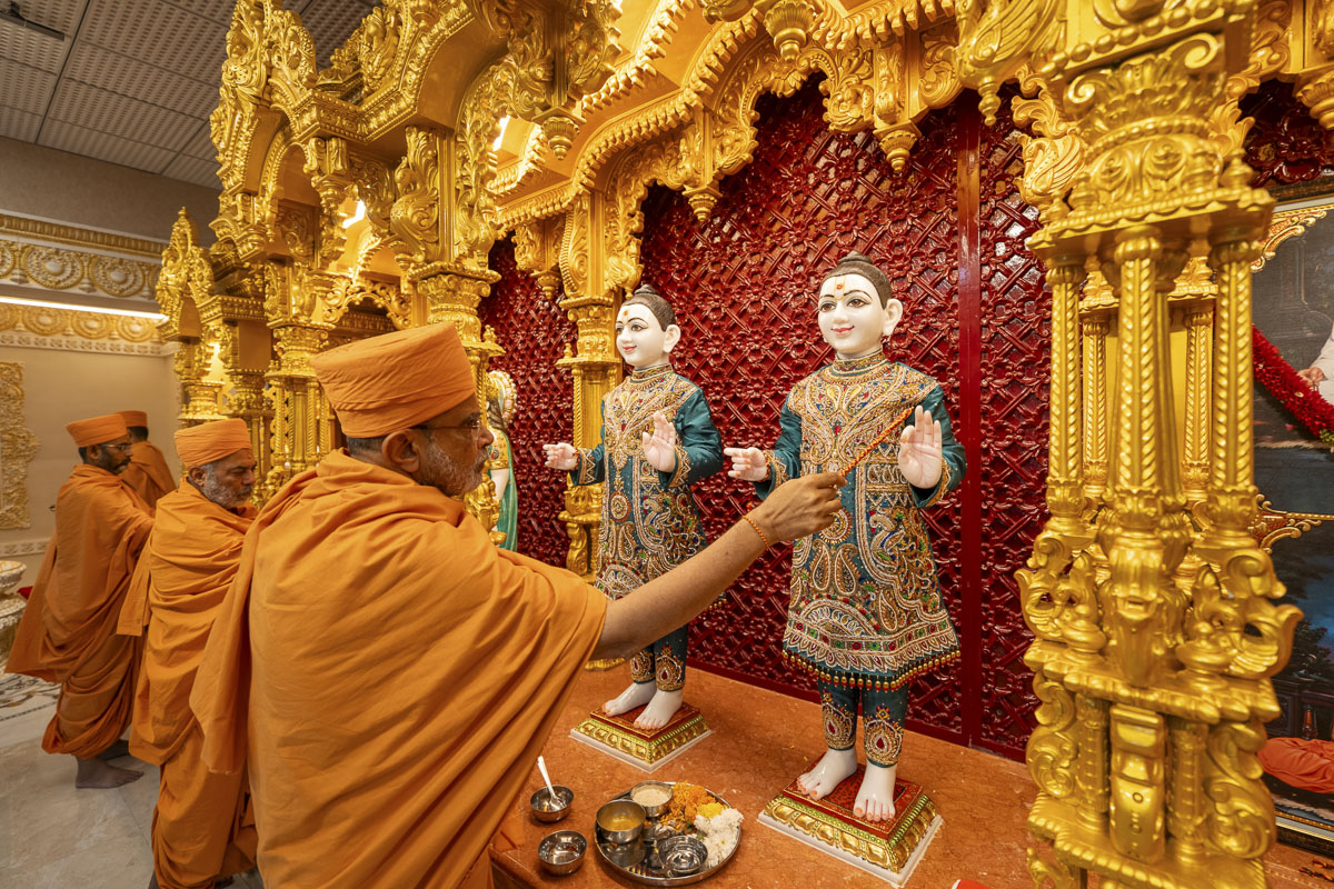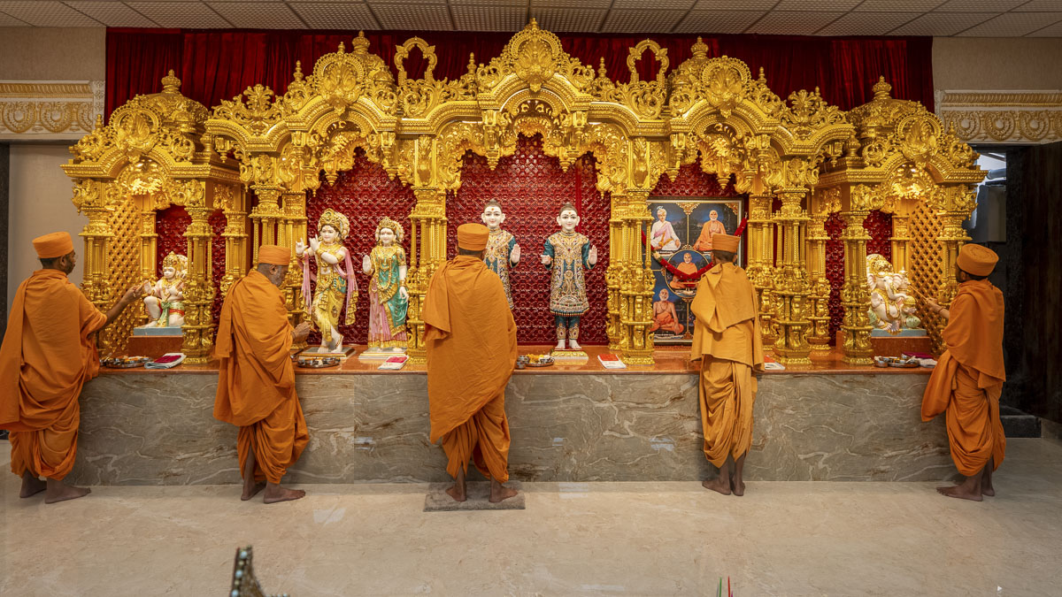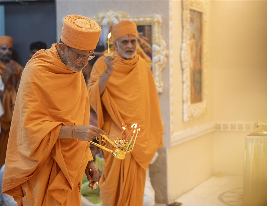 Jnaneshwar Swami and Premprakash Swami perform the mahapuja rituals
