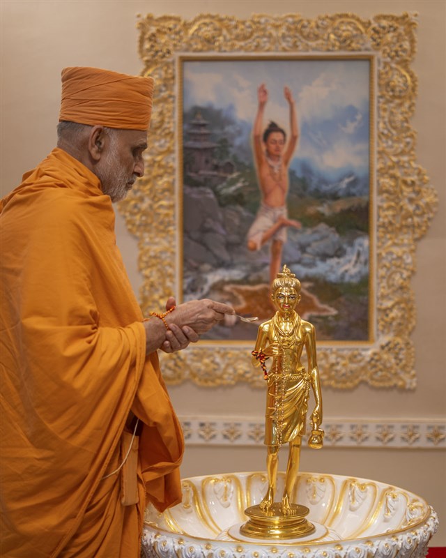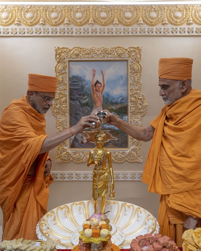 Jnaneshwar Swami and Premprakash Swami perform abhishek of Shri Nilkanth Varni
