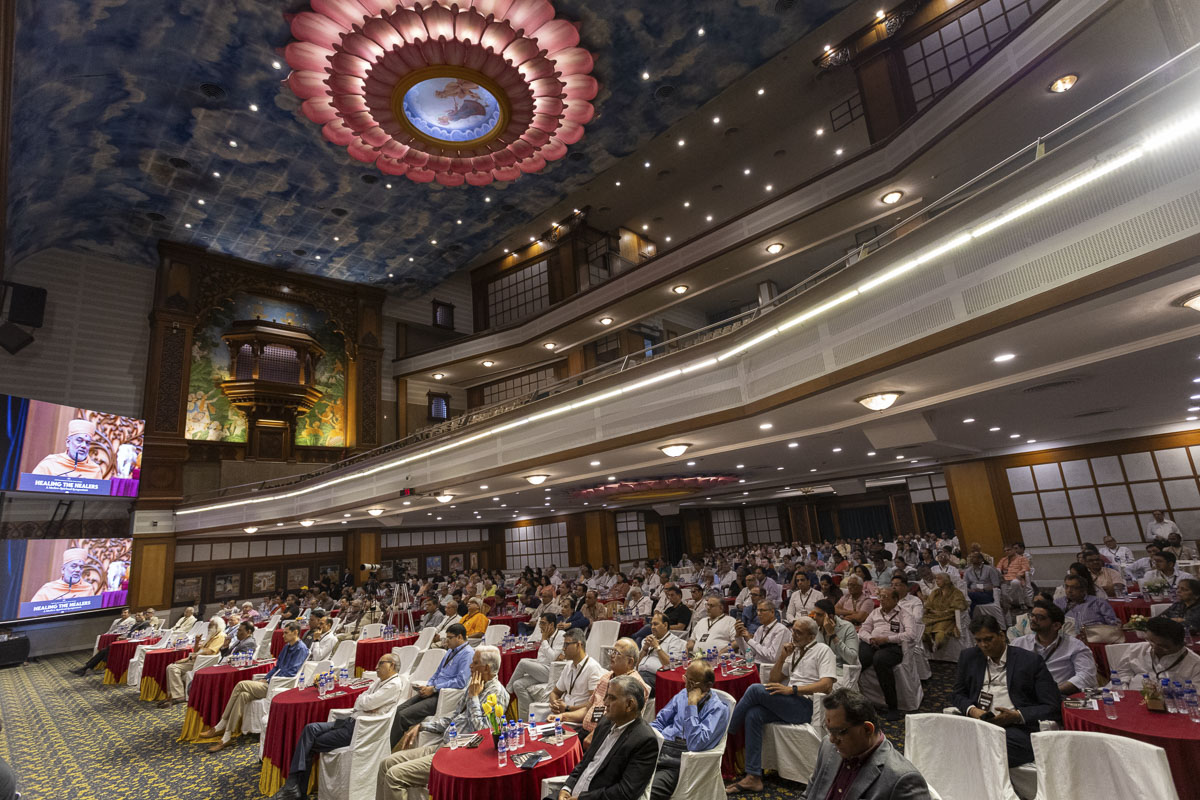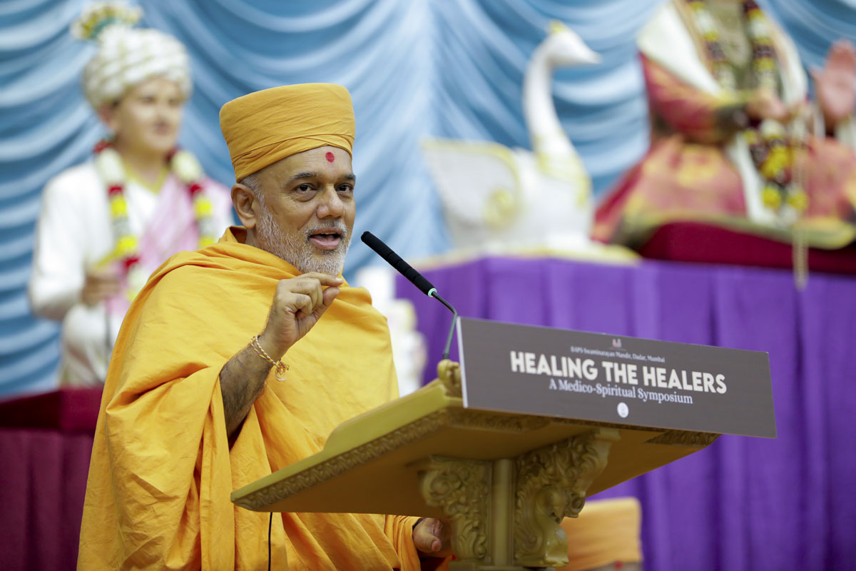 Pujya Dr. Gnanvatsal Swami, respected spiritual leader and international speaker, addressing the gathering on the theme “Healing the Healers”