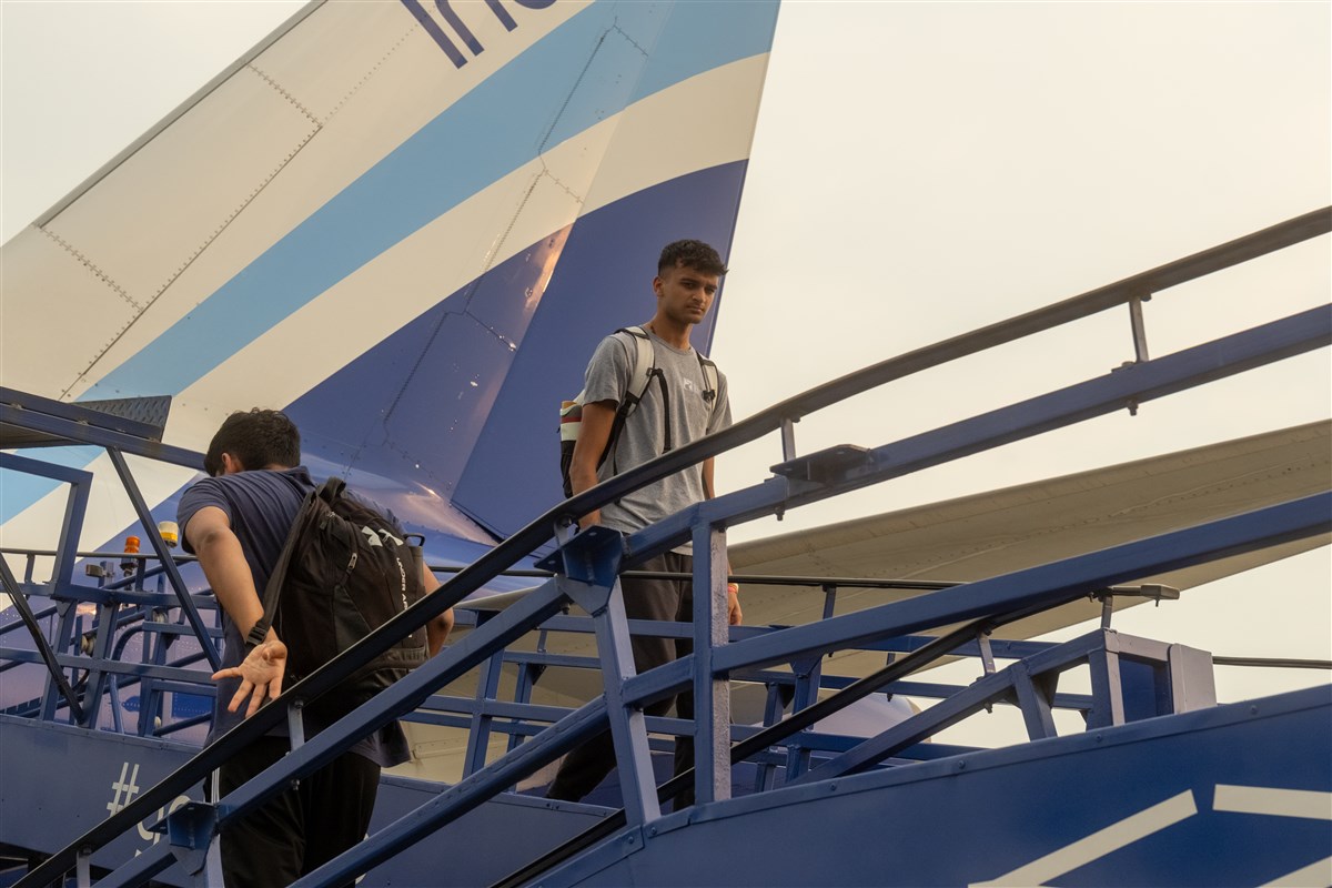 Delegates prepare to board their flight to New Delhi, filled with excitement as their spiritual journey across North India begins