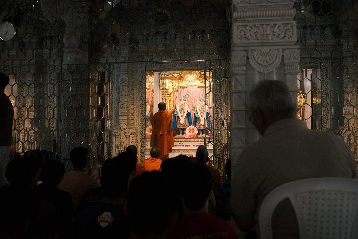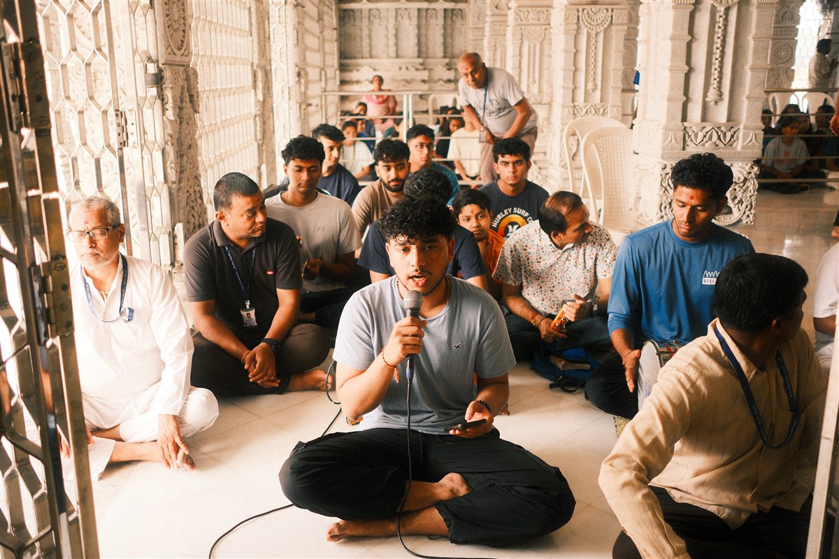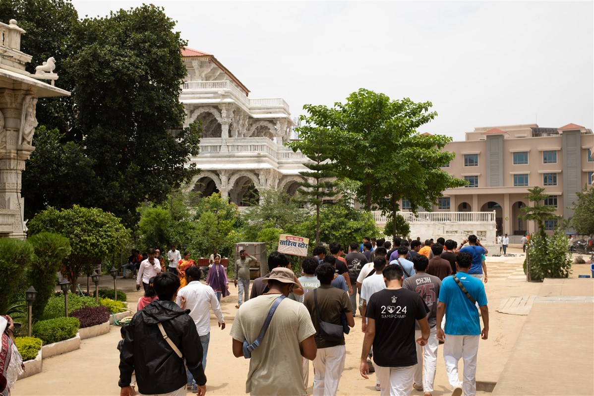Delegates gather within the mandir campus, reflecting on the divine history of the site