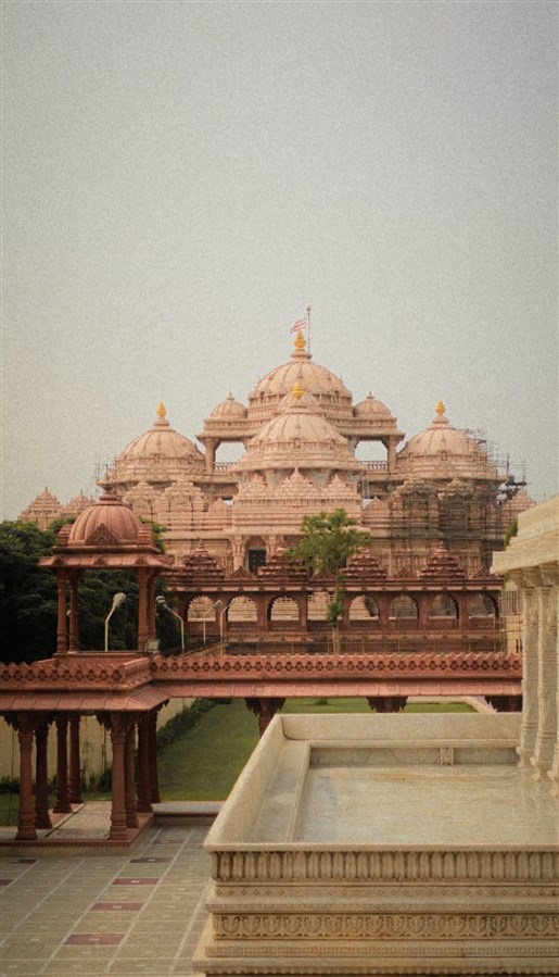 Delegates walk through the mandir campus, appreciating its sacred atmosphere