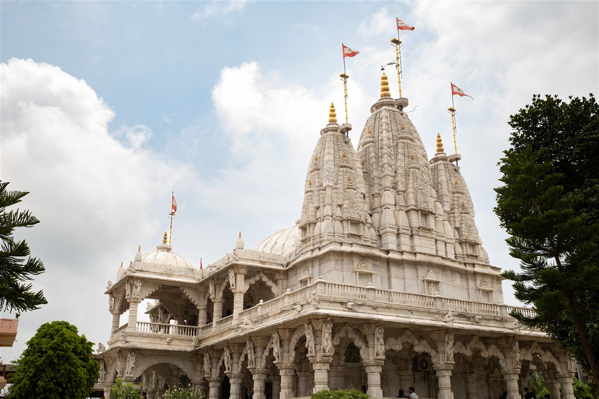 A view of the Swaminarayan Mandir in Chhapaiya, built to honor the birthplace of Bhagwan Swaminarayan