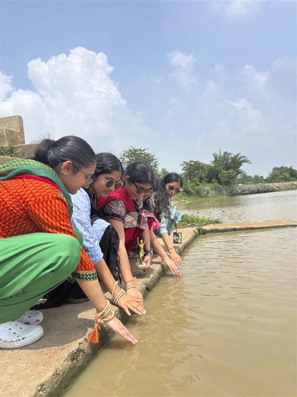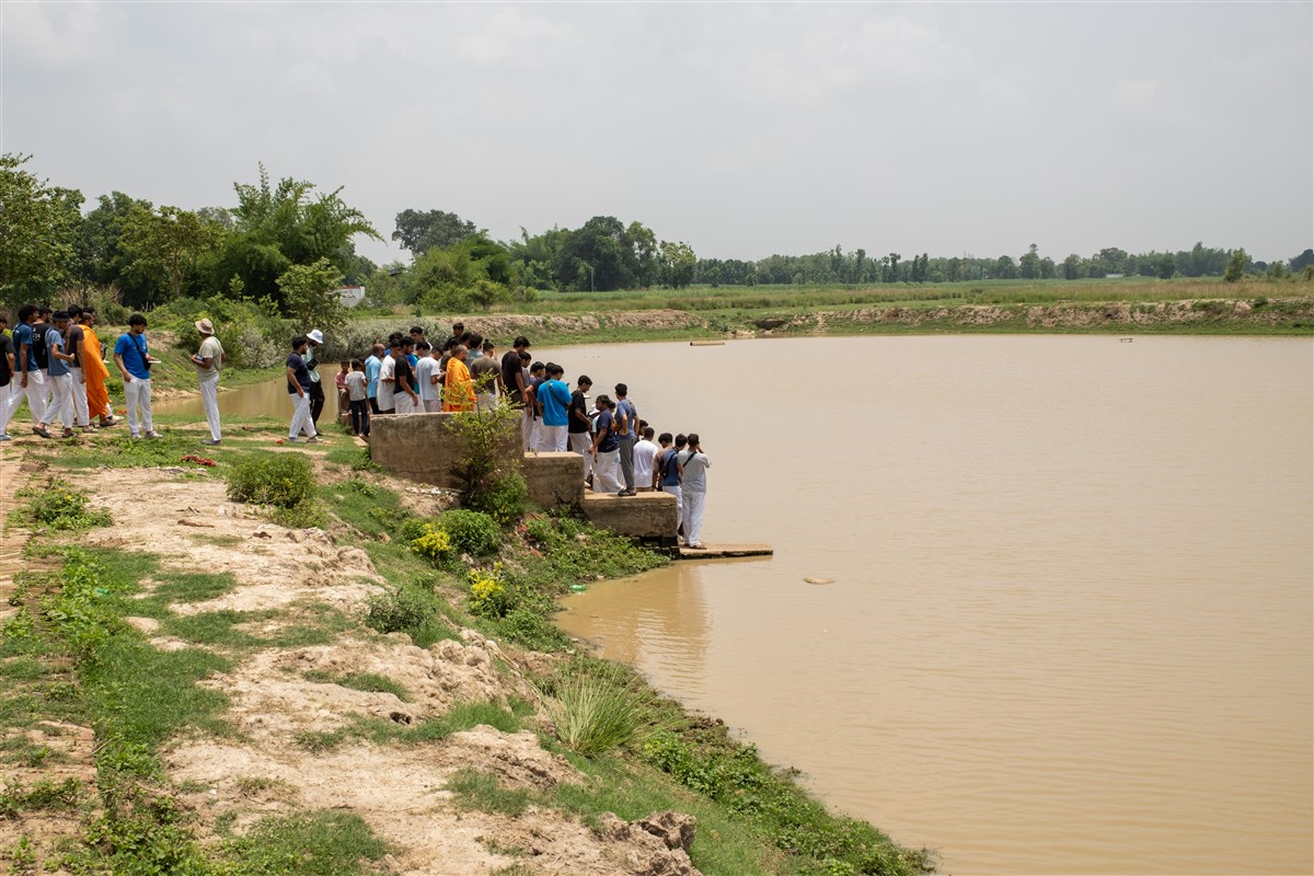 Delegates visit the river where Ghanshyam Maharaj brought the fish back to life