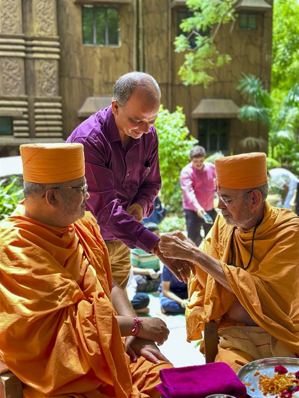 Aksharcharandas Swami ties a nadachhadi to Prof. Dr. Gyanaranjan Panda