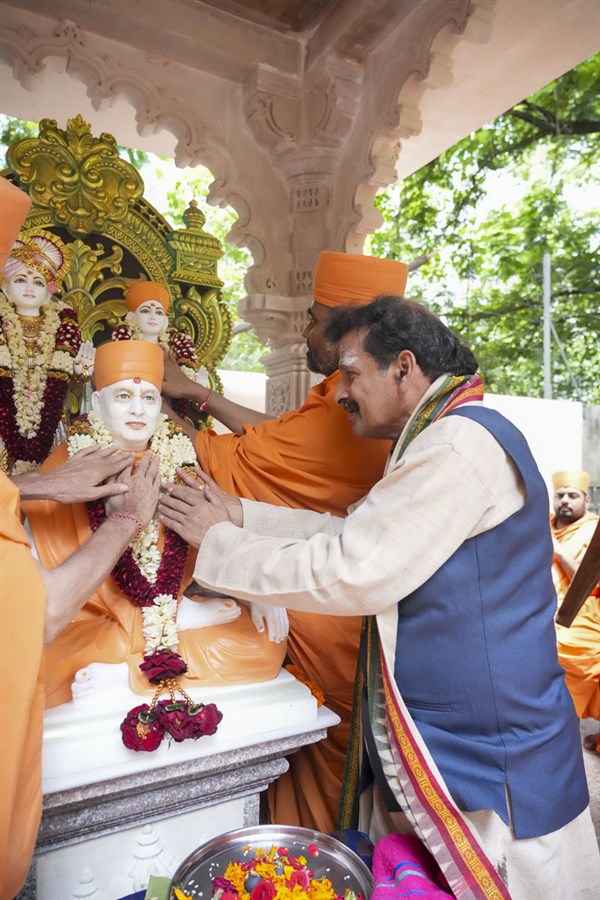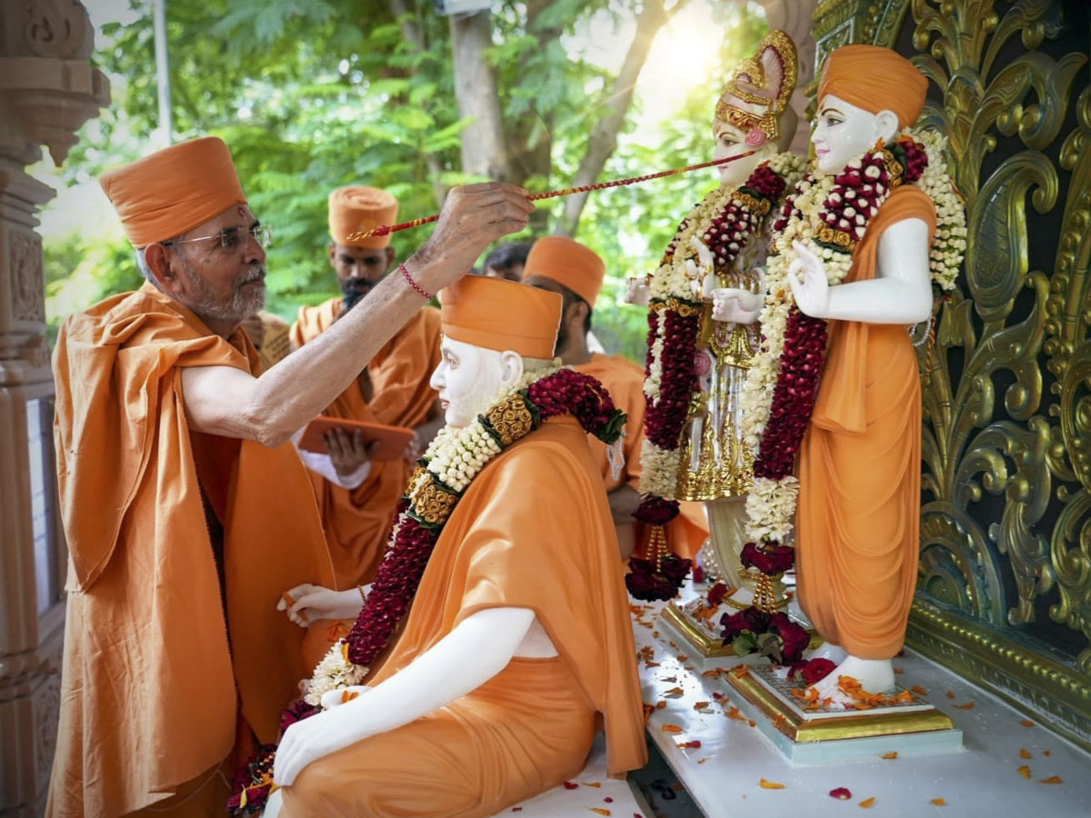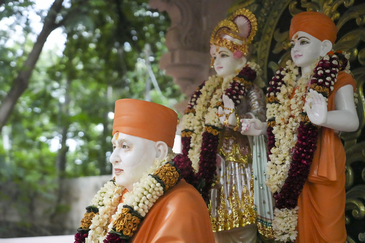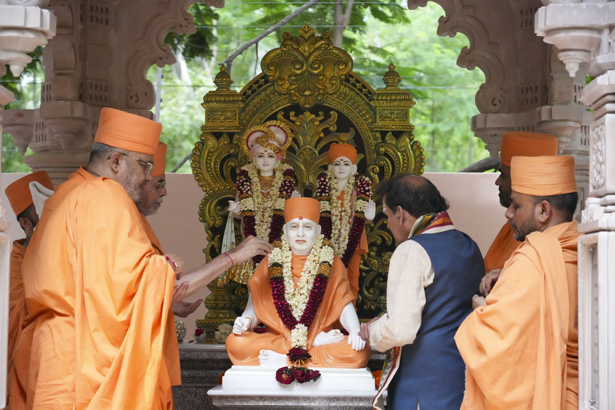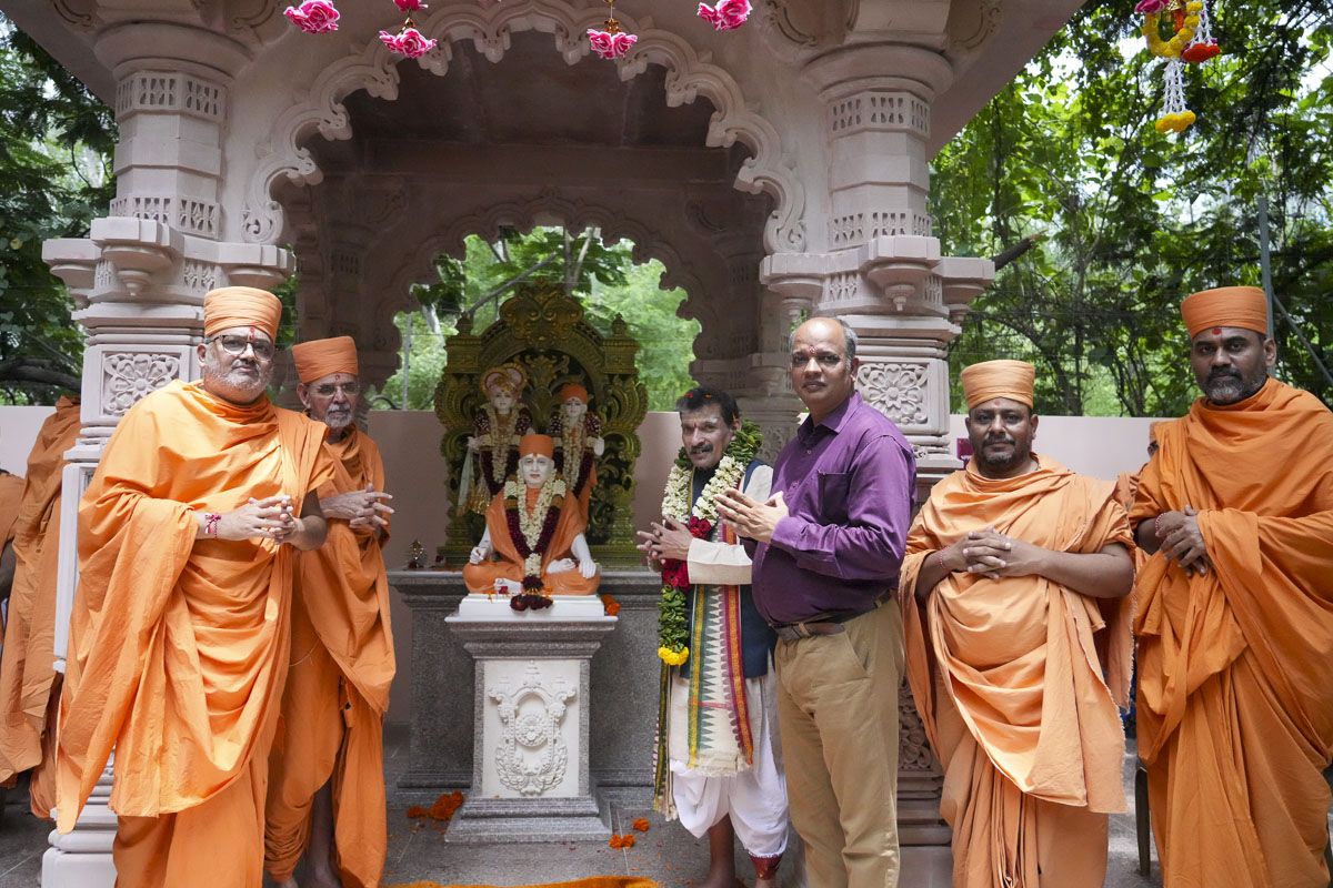 Murtis of Akshar-Purushottam Maharaj & Pramukh Swami Maharaj consecrated at the Akshar-Purushottam Darshan Mandapam, National Sanskrit University, Tirupati