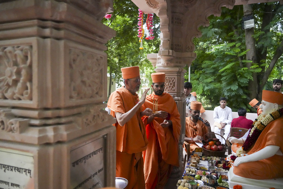 Aksharcharandas Swami performing the arti