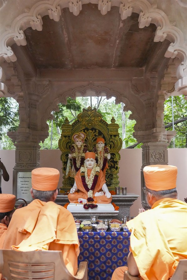 Offering annakut to Akshar-Purushottam Maharaj & Pramukh Swami Maharaj
