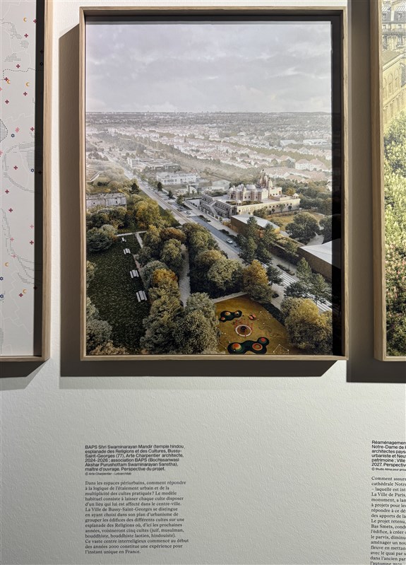 The upcoming BAPS Swaminarayan Hindu Mandir in Paris is featured in the exhibition among places that bring meaning and beauty to the city of Paris