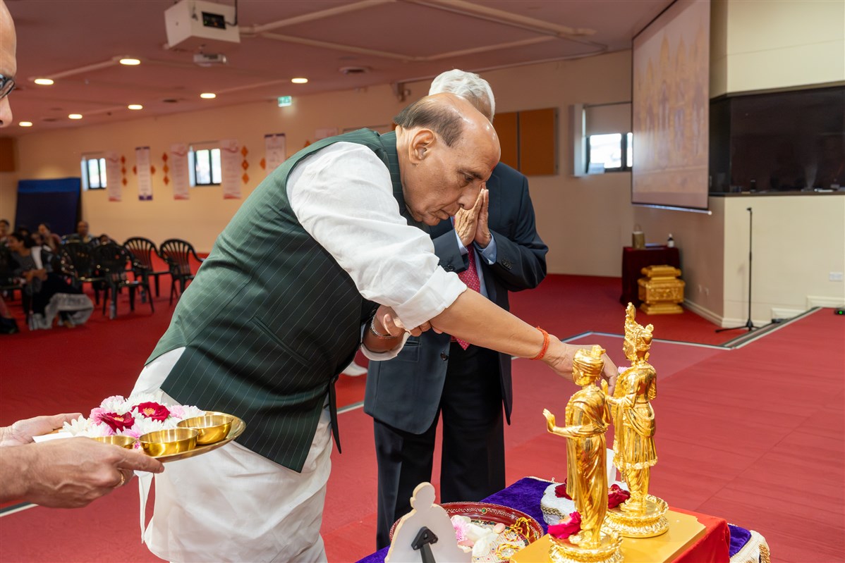 Defence Minister of India, Shri Rajnath Singh, Visits BAPS Swaminarayan Mandir, Rosehill, Sydney, Australia